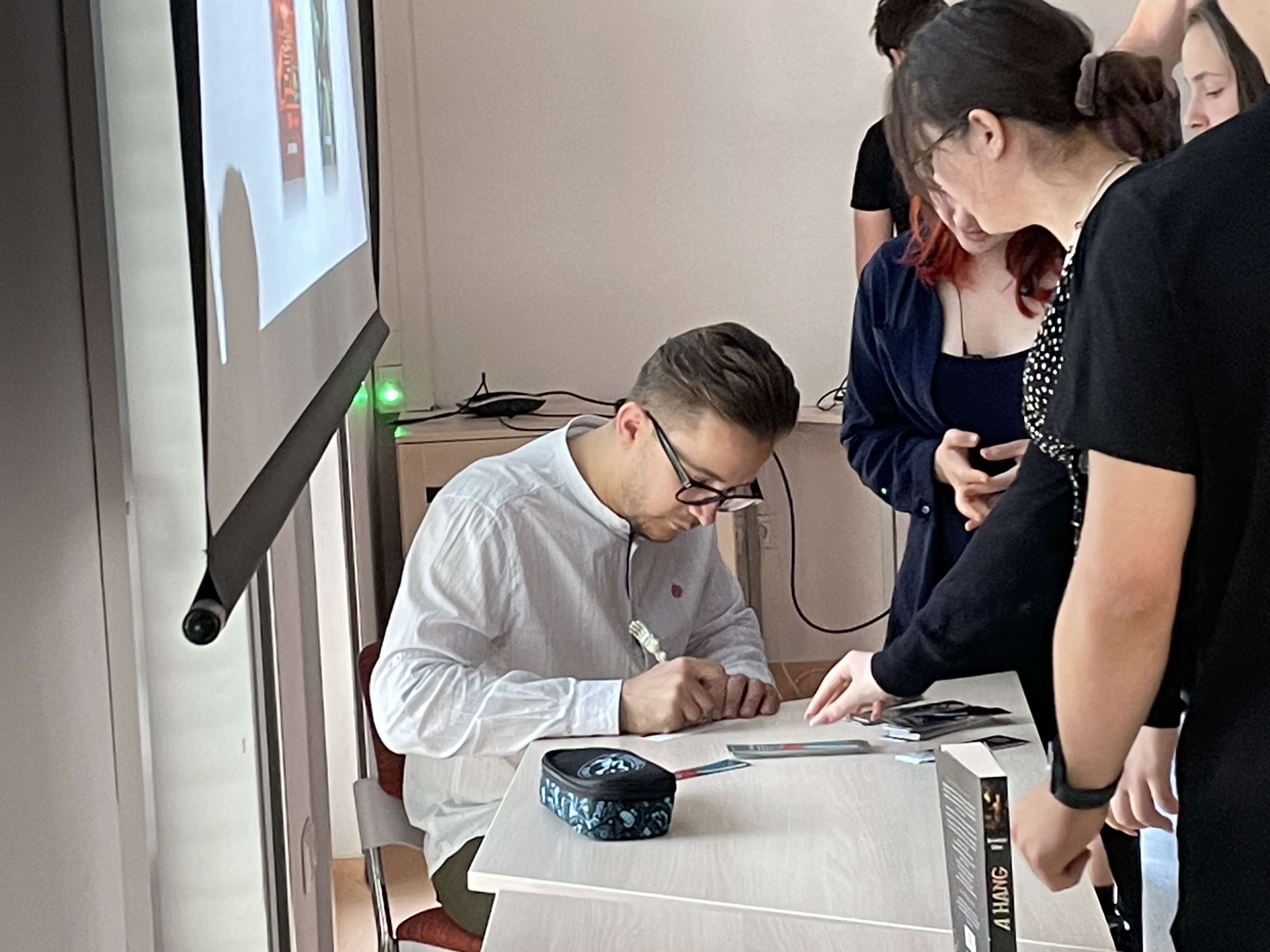 Rendhagyó irodalomóra keretén belül beszélt a diákoknak arról, miként kezdődött a karrierje, milyen nehézségekkel kellett megküzdenie, míg végül sikeres szerzővé vált. Megtudhattuk azt is, miként segíti a könyvei népszerűsítését a TikTok és más közösségi média-felületek.