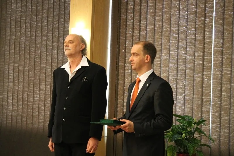 Nász János átveszi Schmidt Csaba polgármestertől a 2018. évi Zöld Ág Díjat. Fotó: Hatvani István