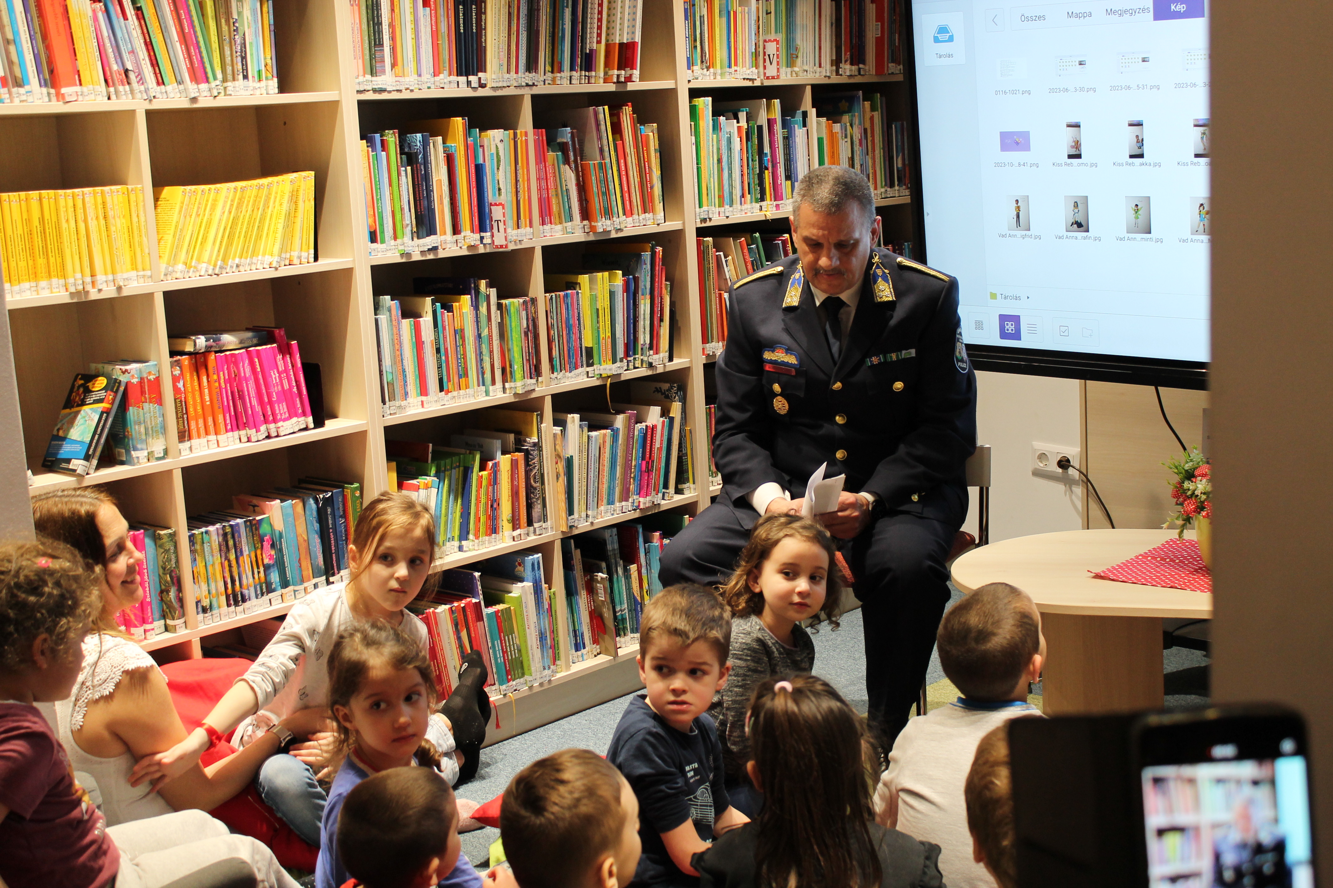 2024. február 23-án pénteken ismét mesesarok volt a könyvtárban. Ezúttal Boross Zoltán rendőrfőkapitány örvendeztette meg a gyerekeket az általa felolvasott mesékkel. A mese után természetesen alkotásra is volt lehetőség.