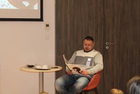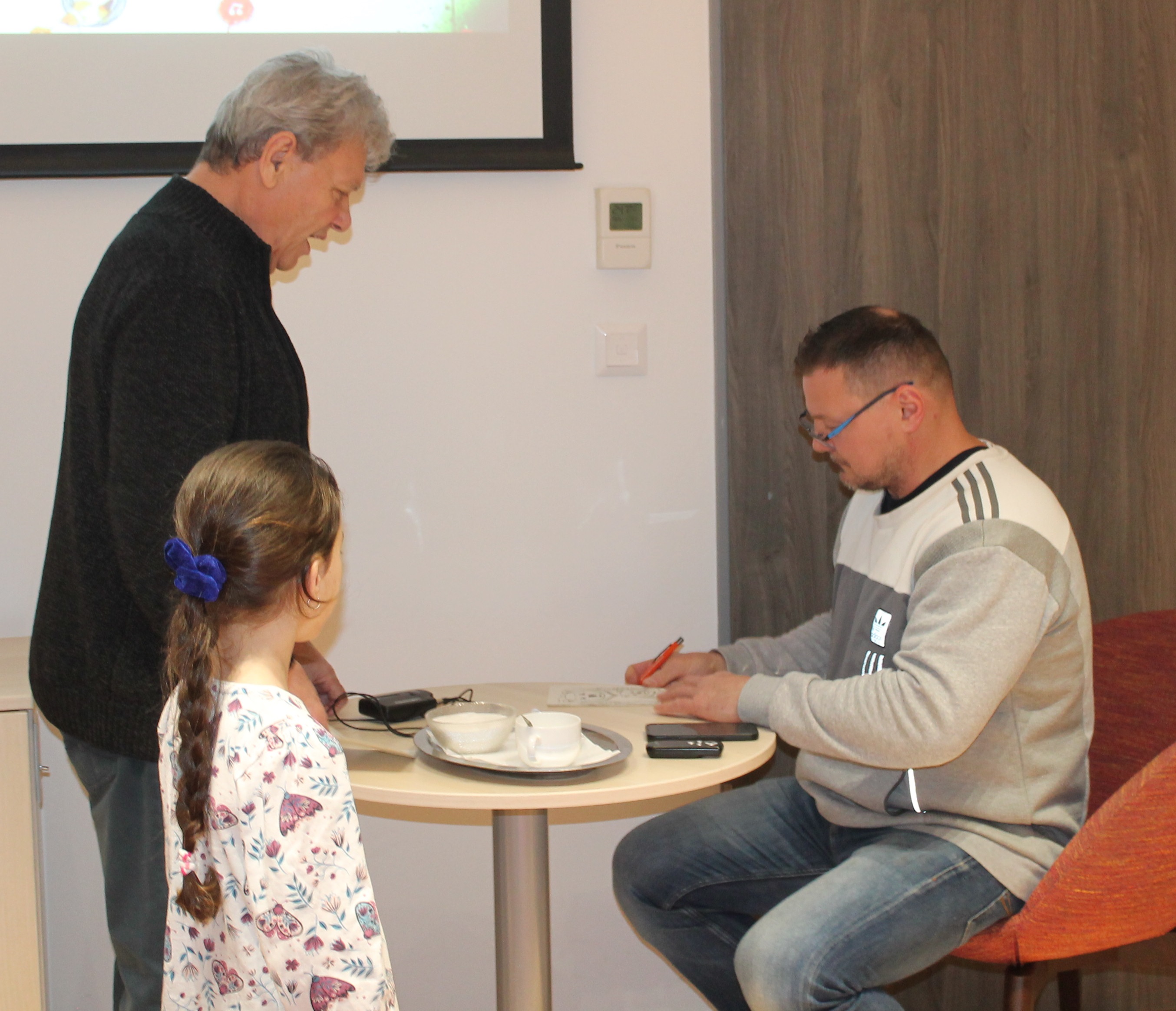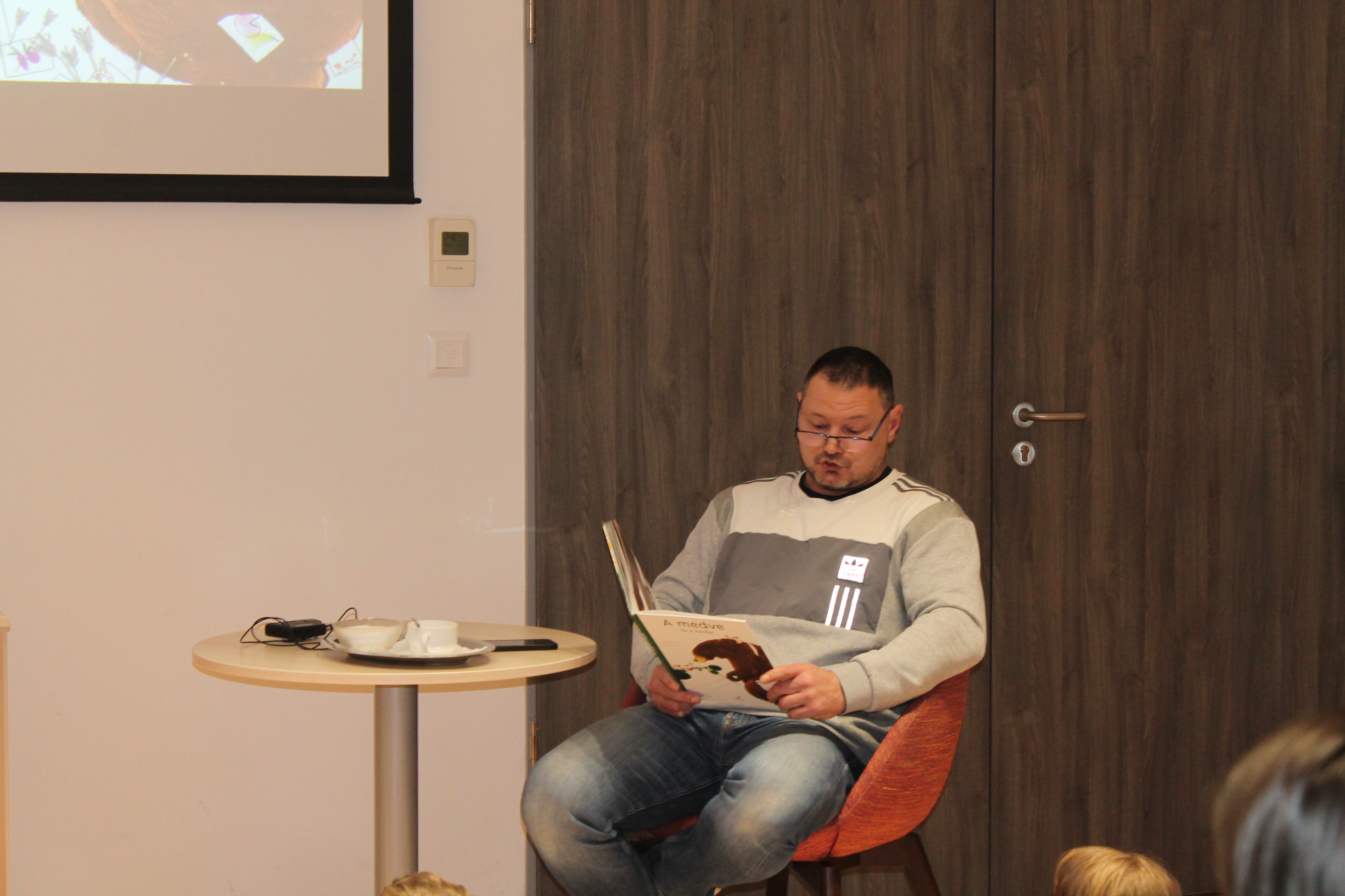 Erdei Zsolt olimpiai bajon ökölvívónk igazán testhezálló mesével örvendeztette meg közönségünket 2025. január 31-én a Mesesarokban. A medve és a kardja című történet minden szereplője más-más hangon szólalt meg, és a harcias, karddal hadonászó medve sem kevesebb bravúrral szerepelt olimpikonunk előadásában. A kiváló sportember nem csak az ökölvívásban bajnok, legalább ennyire ért a gyerekek nyelvén is, sőt, a gyermekirodalomban is teljesen otthonosan mozog. Három gyermeke után ezen a péntek délutánon kicsi vendégeinket is elbűvölte. Természetesen a felnőtt közönség sem maradt jó szó, ölelés, vagy autogram nélkül!