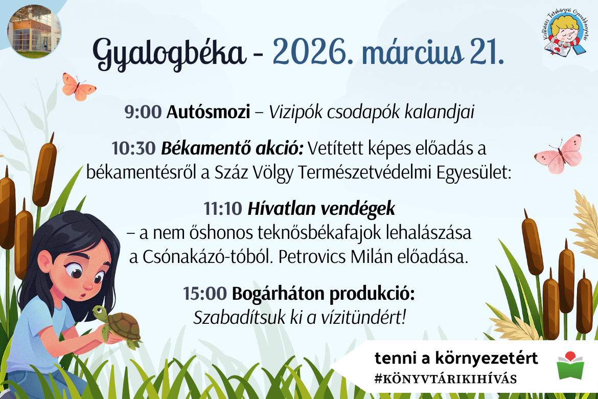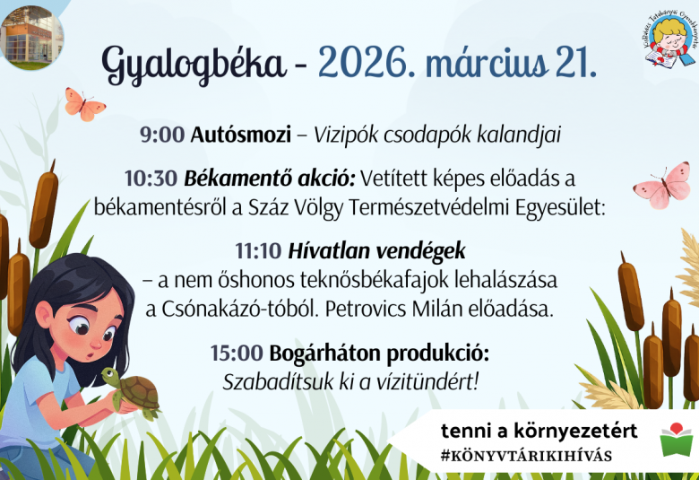 10:30 Békamentő akció: Vetített képes előadás a békamentésről Száz Völgy Természetvédelmi Egyesülettel
