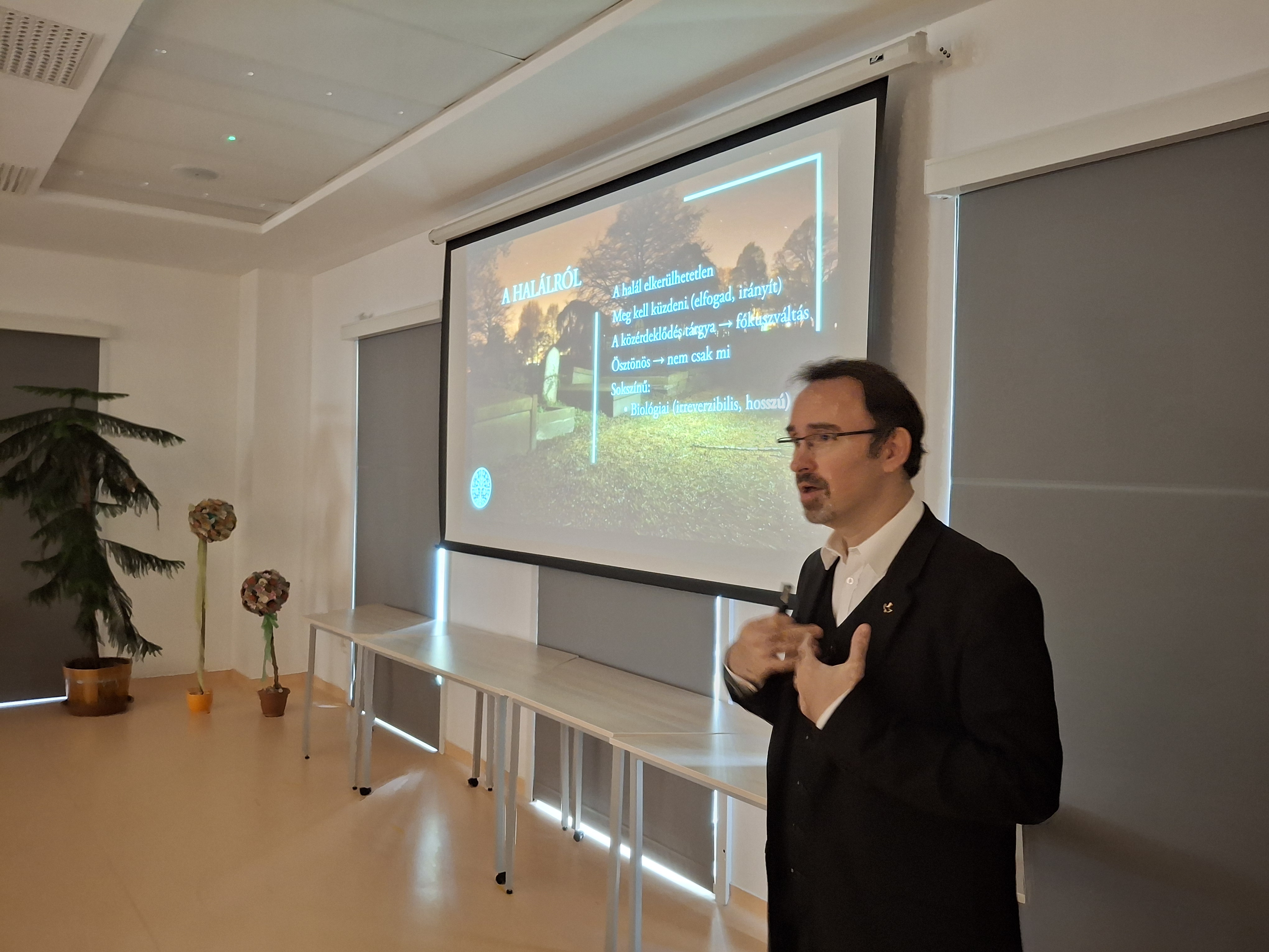 Az előadást a Szent Margit Gimnázium és Általános Iskola 5. és 6. osztálya hallgatta végig feszült figyelemmel, hiszen ez az a téma, amiről érdemben már a családok nem beszélnek. A halál fogalma távoli a mai ember számára. A kórházak ridegsége és a haldokló magánya már nem teszi közvetlenül megélhetővé szerettünk elengedését. A közelmúlt szokásai, hiedelmei kerültek terítékre a magyar kultúrkörből, melyek bemutatták a gyerekeknek azokat a folyamatokat, amelyek rituálék által segítettek felkészülni a családtag halálára, ravatalozására, temetésére és az utána következő gyászév elviselésére. A családok, rokonok, ismerősök nem csak a haldoklót segítették utolsó napjaiban, hanem a hozzátartozókat is támogatták. Talán a médiából ismert halál másik arcát is megismerhették a diákok ezen a hiánypótló alkalmon.