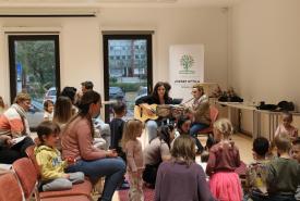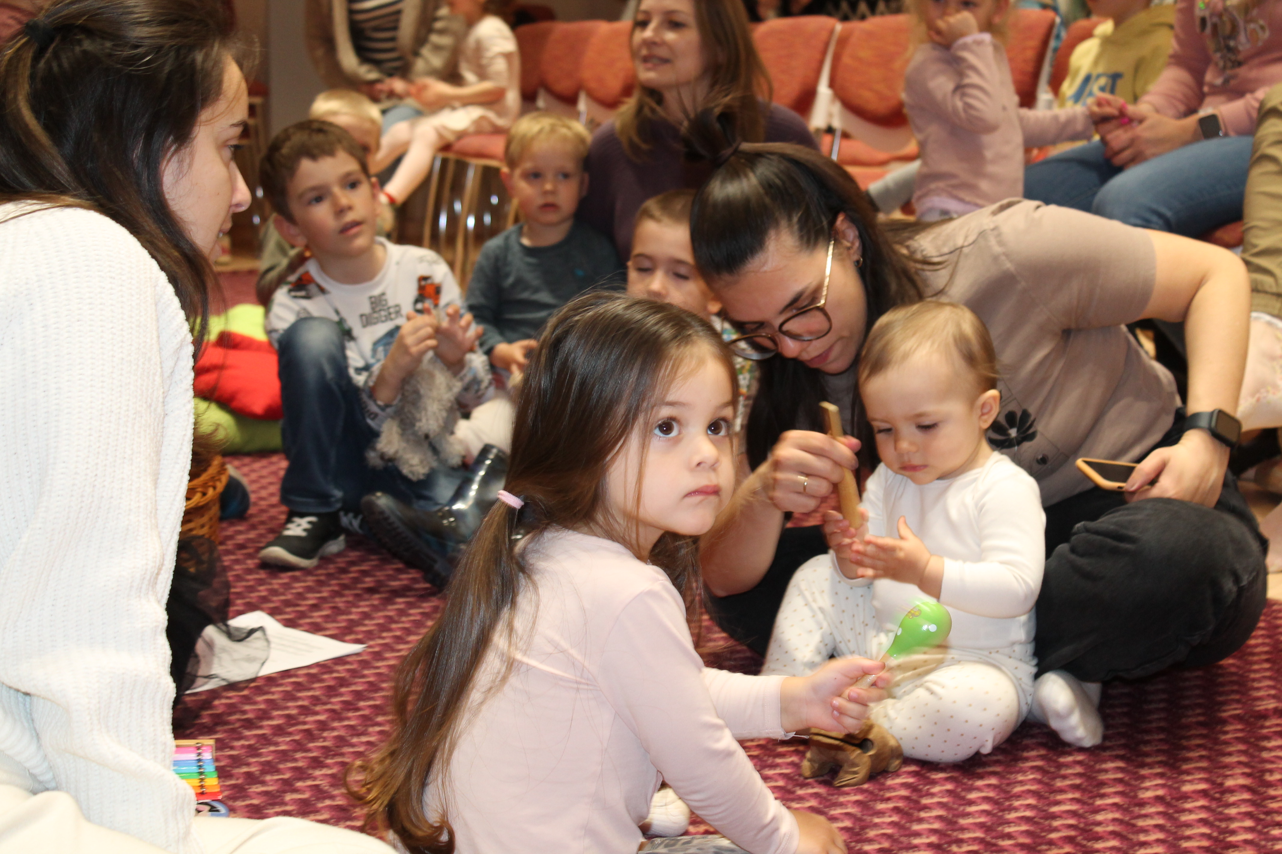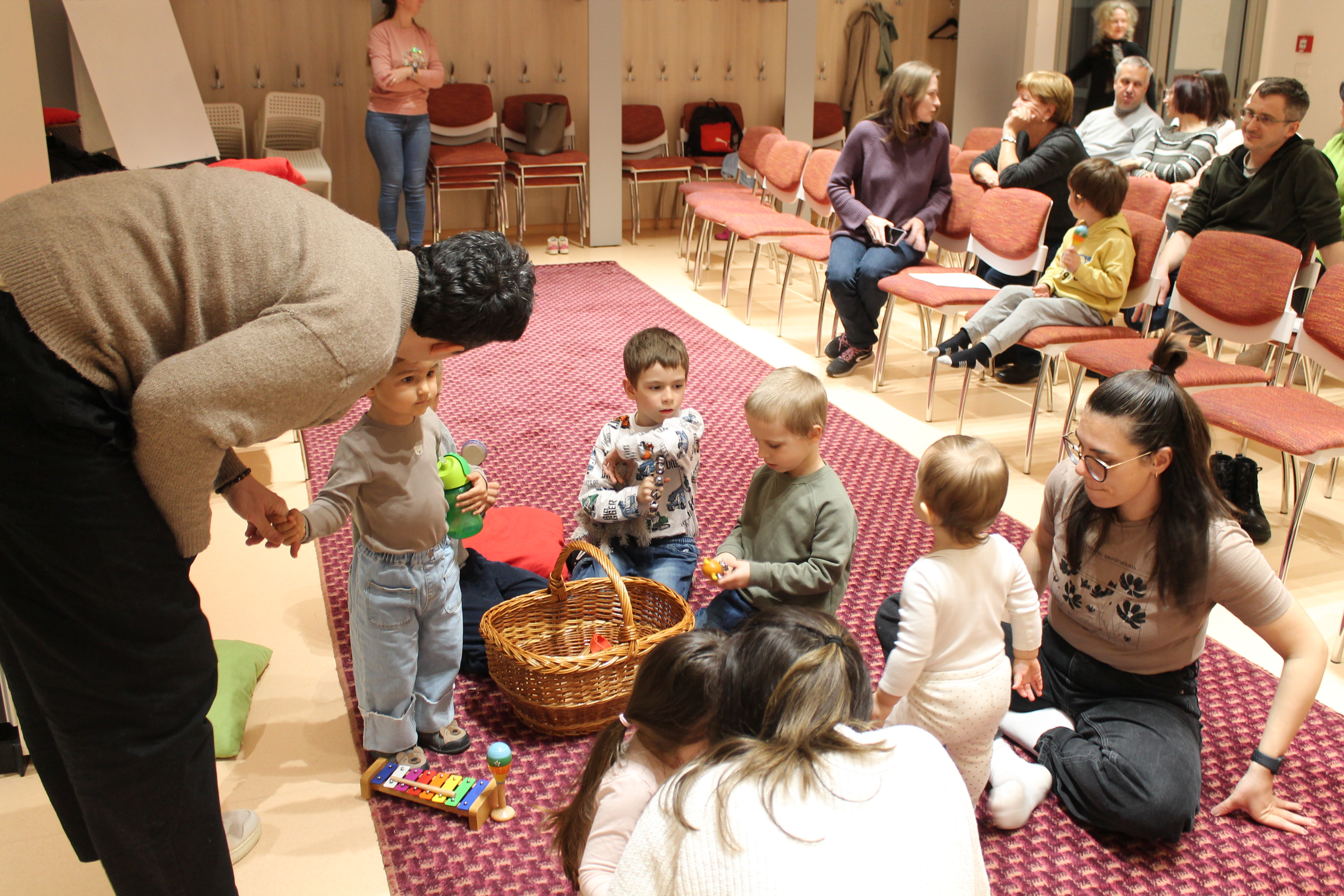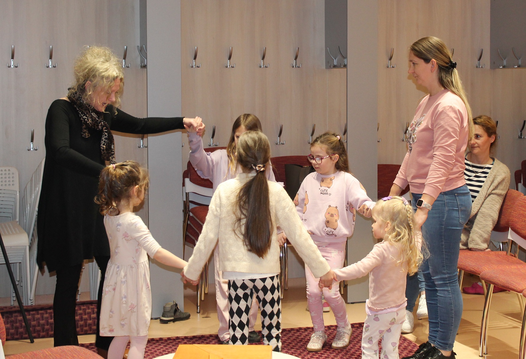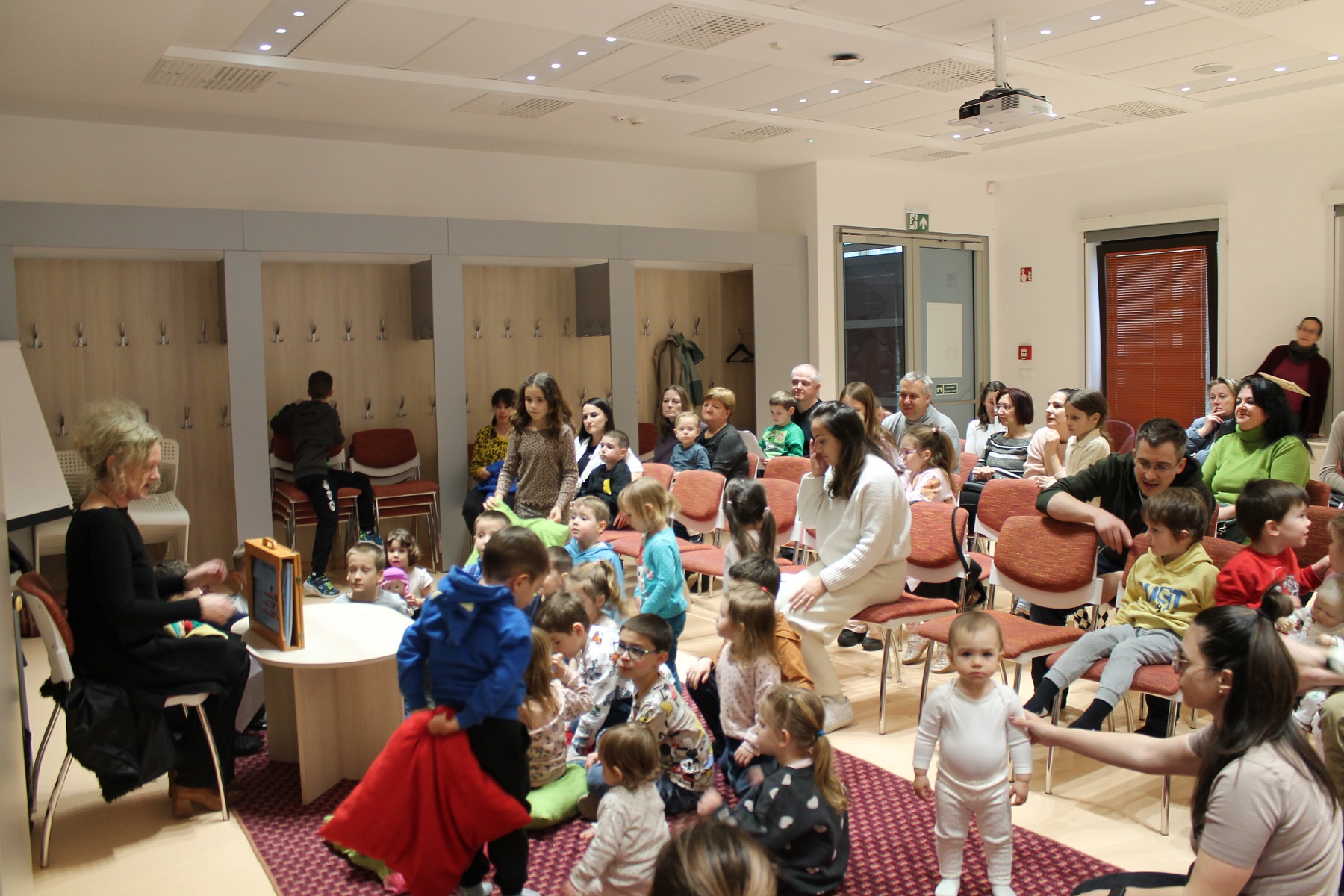 2026. március 27-én Demeter Lázár Katalin mesélt újra a gyerekeknek. Holle anyót már sok kis apróság ismerte, ettől is lett annyira nagy az öröm, amikor a papírszínház lapjain megelevenedett a történet Lázár Katalin előadásában. Fényi-Dudás Anikó gitár-, és Kostyák Éva fuvolajátéka követte a mesét, minekutána táncra is perdült a közönség apraja és nagyja. Akit inkább a zene bűvölt el, rázhatta a rumbatököt, fújhatta a körtemuzsikát! A mesét ez alkalommal is kézműves szöszmötölő követte.