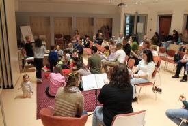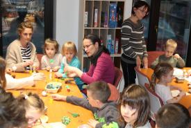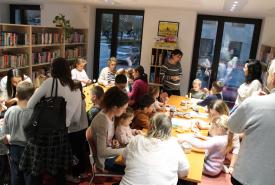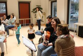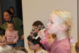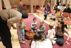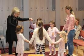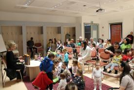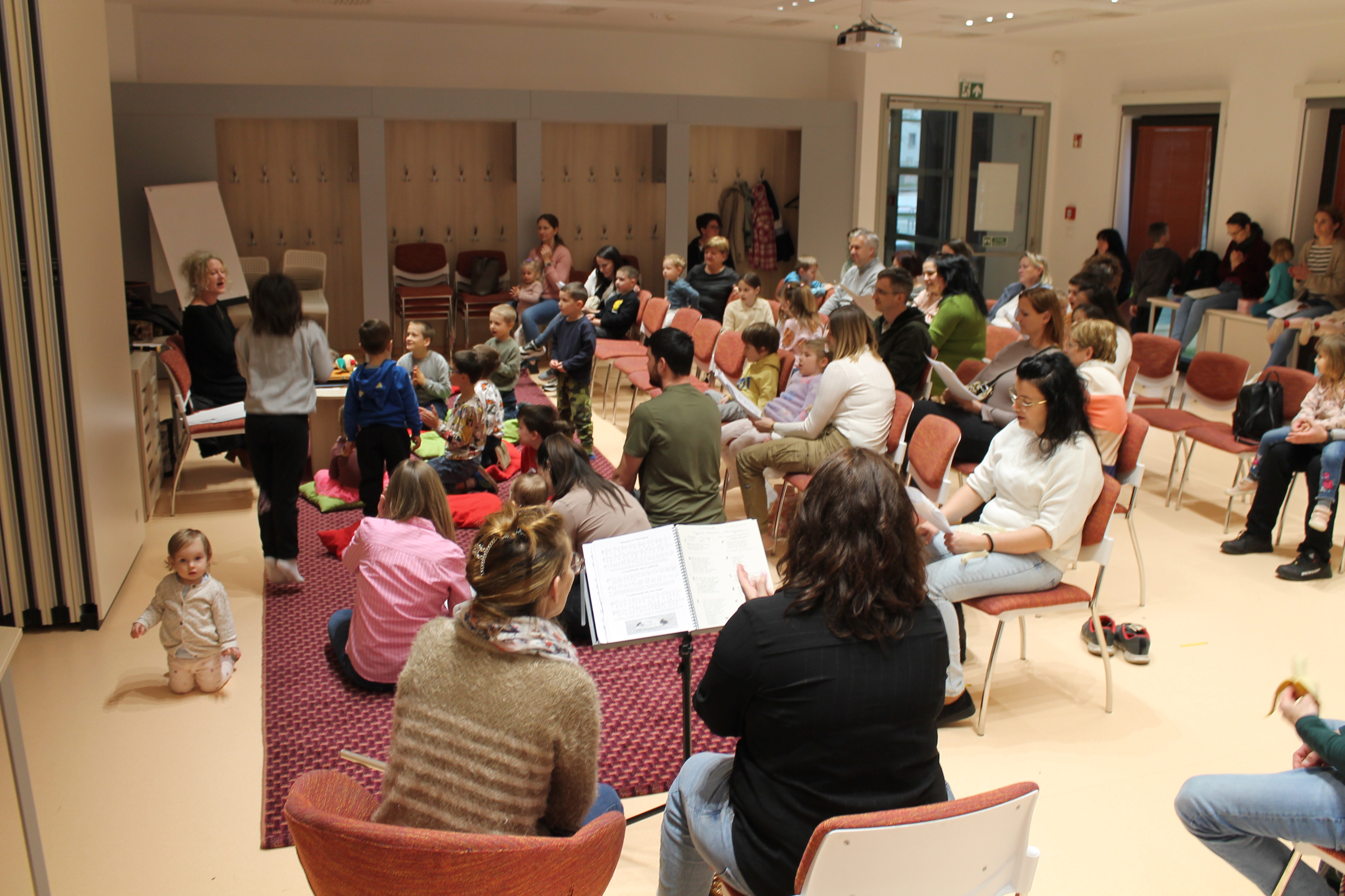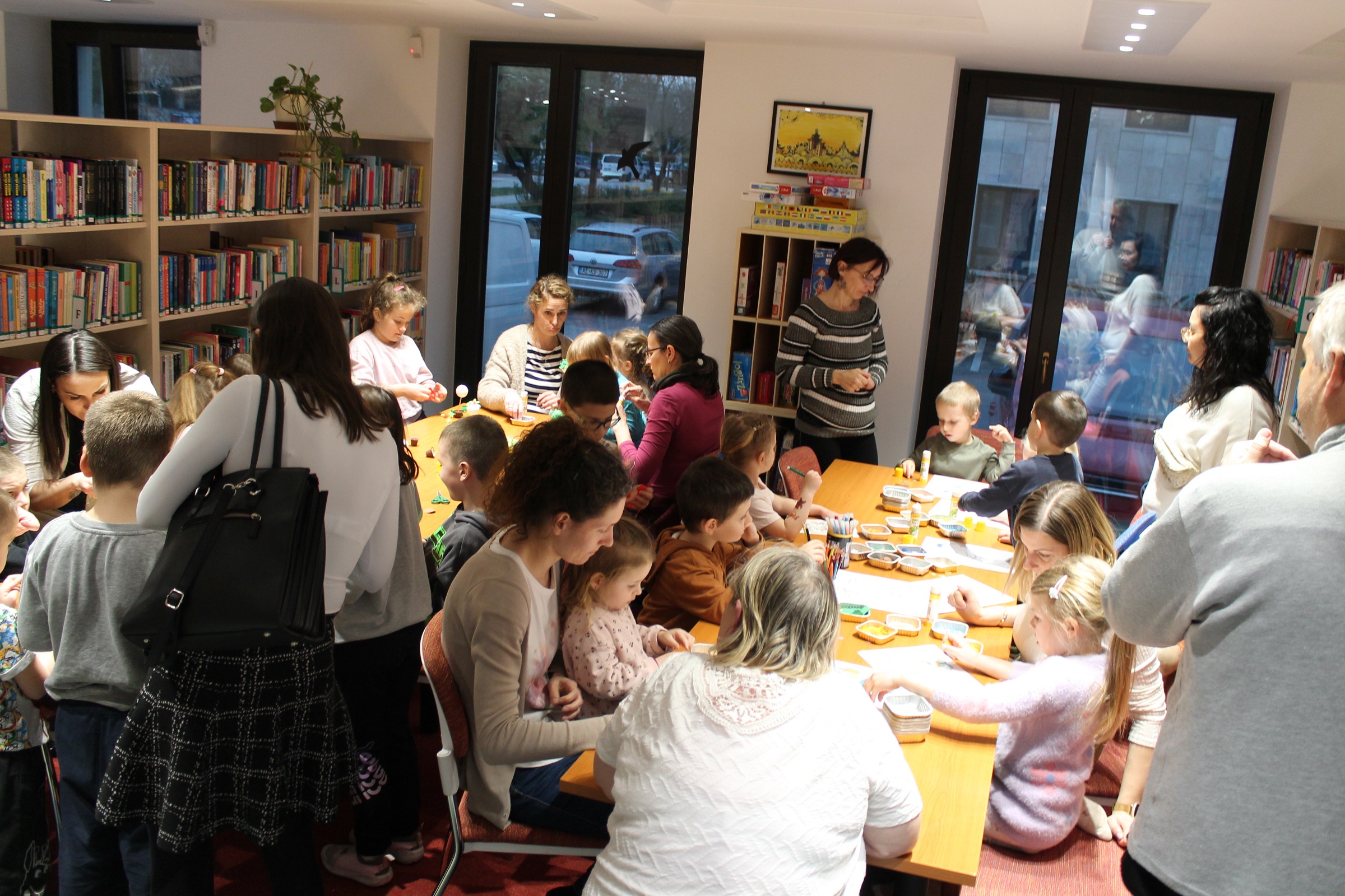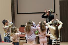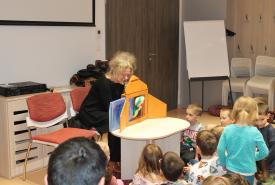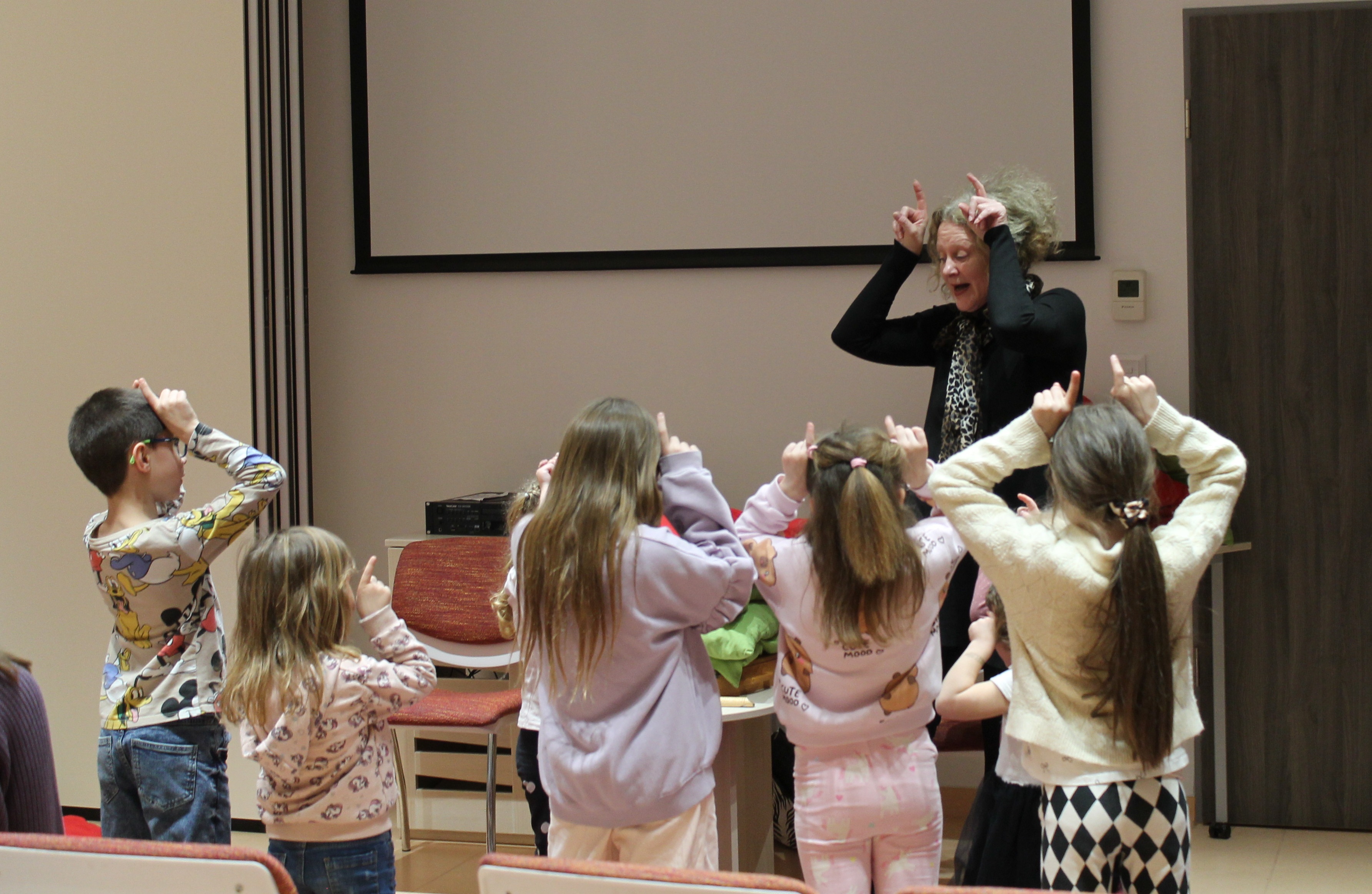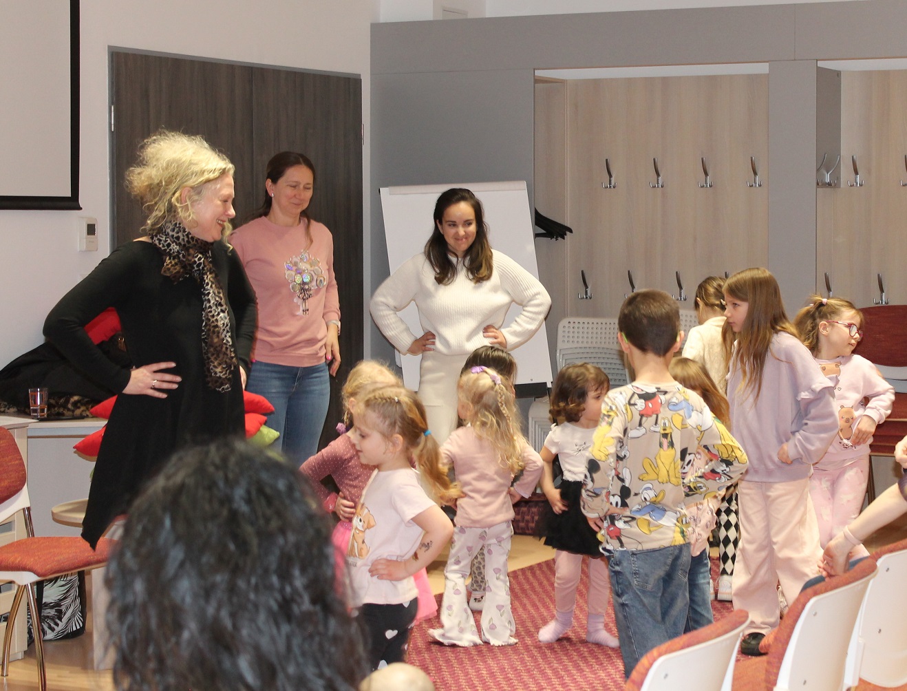 2026. március 27-én Demeter Lázár Katalin mesélt újra a gyerekeknek. Holle anyót már sok kis apróság ismerte, ettől is lett annyira nagy az öröm, amikor a papírszínház lapjain megelevenedett a történet Lázár Katalin előadásában. Fényi-Dudás Anikó gitár-, és Kostyák Éva fuvolajátéka követte a mesét, minekutána táncra is perdült a közönség apraja és nagyja. Akit inkább a zene bűvölt el, rázhatta a rumbatököt, fújhatta a körtemuzsikát! A mesét ez alkalommal is kézműves szöszmötölő követte.