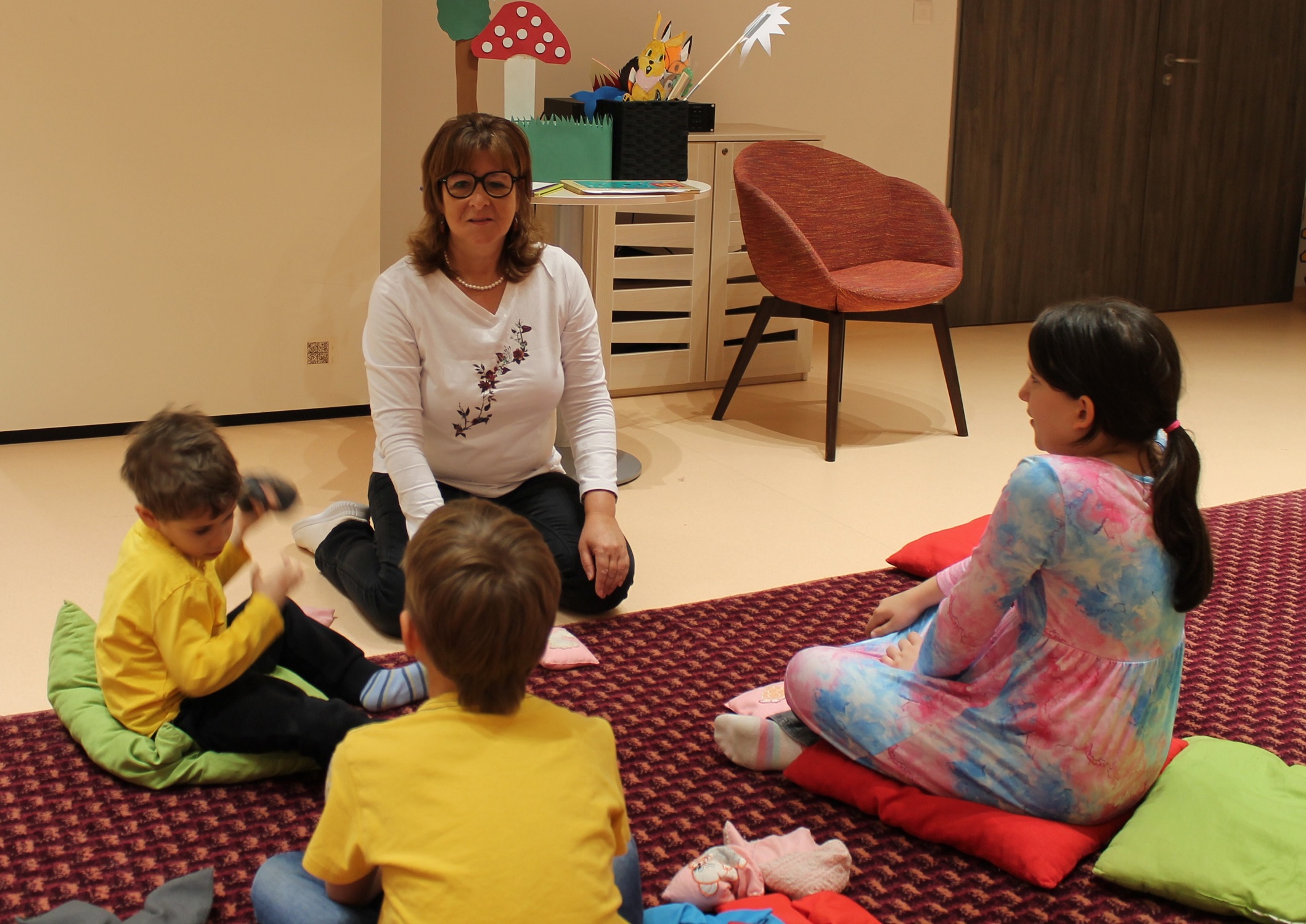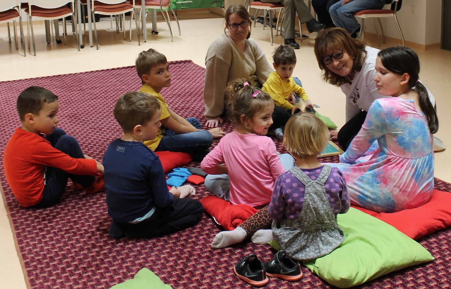 Ha nem is a gomba alatt, de a szőnyegünkön kucorodott össze néhány apró gyermek Bodonyi Júlia meséjét hallgatva 2025. október 31-én a TMJV József Attila Könyvtár előadótermében.