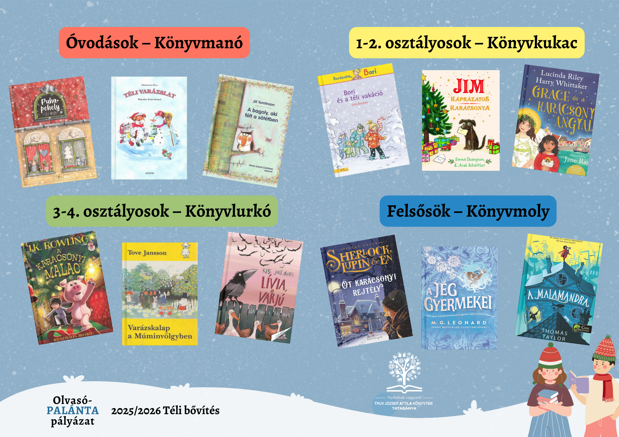 A téli bővítés választható könyvei korcsoportonként: