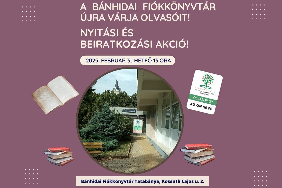 A Bánhidai Fiókkönyvtár nyitóünnepsége 2025. február 3., hétfő 13 órától kezdődik.