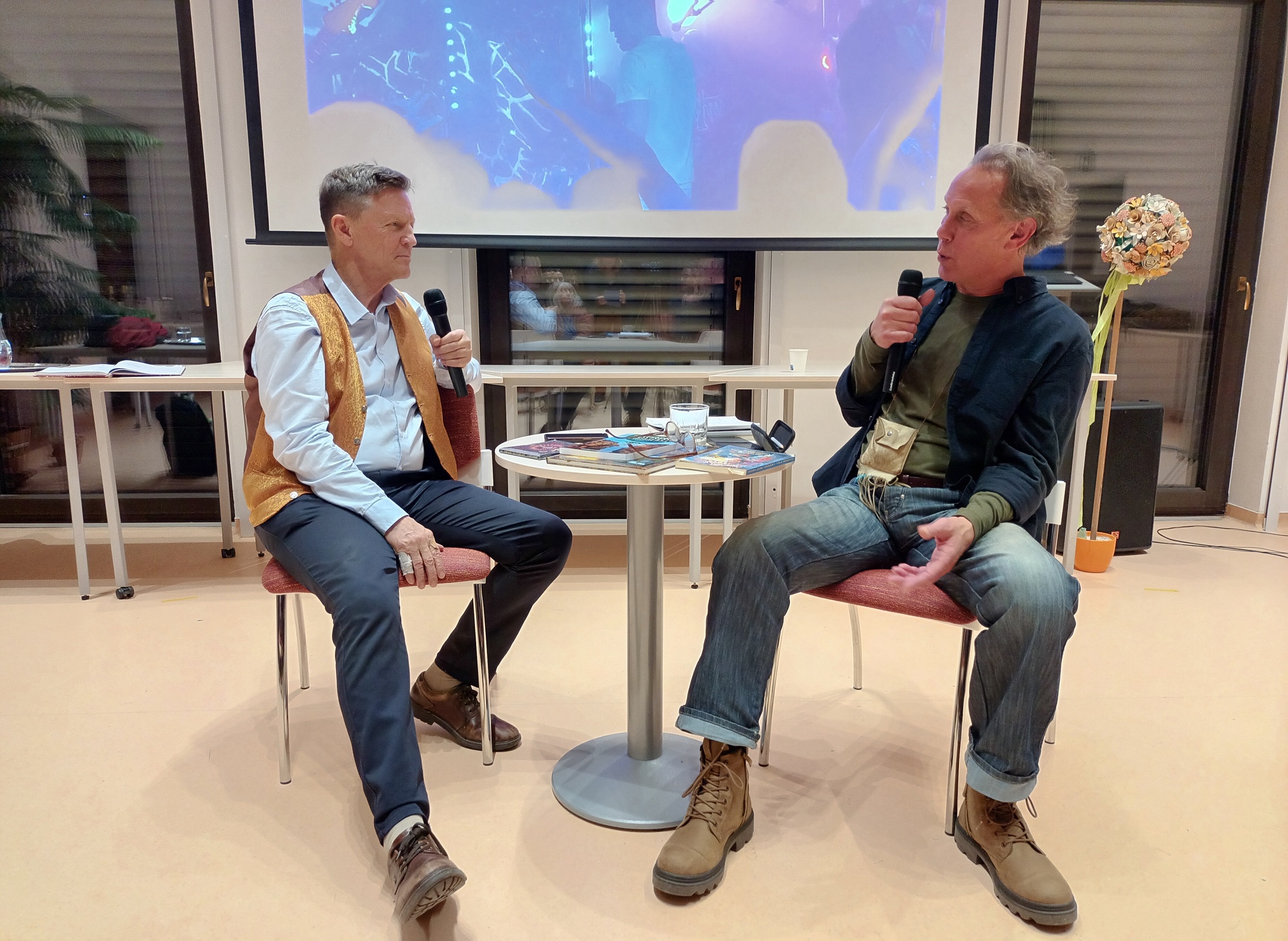 Beszélt az újraértelmezett népzenét játszó Vágtázó Csodaszarvas formációról is, amely most ünnepli fennállásának huszadik évfordulóját.