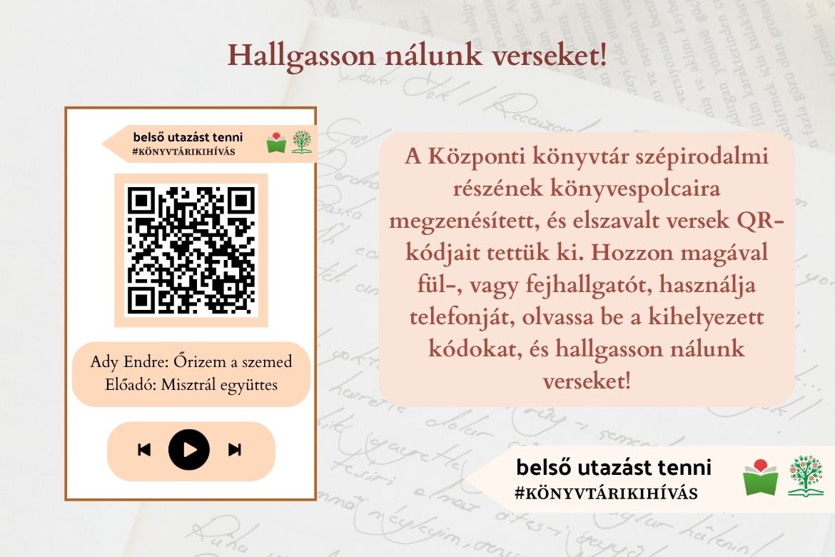 Hozzon magával fül-, vagy fejhallgatót, használja telefonját, olvassa be a kihelyezett QR-kódokat, és hallgasson nálunk verseket!