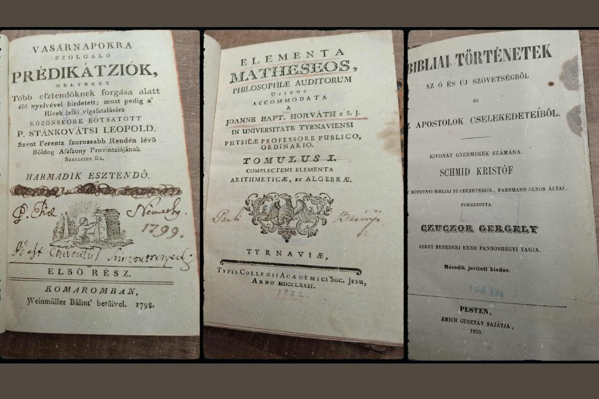 A felújított dokumentumok között szerepel Czuczor Gergely 1855-ben kiadott bibliai történeteket tartalmazó fordítása, egy 1798-ban Komáromban nyomtatott vasárnapi prédikációkat tartalmazó kötet, valamint Horváth Keresztély János: A matematika elemei (Elementa Matheseos) című latin nyelvű kötete.