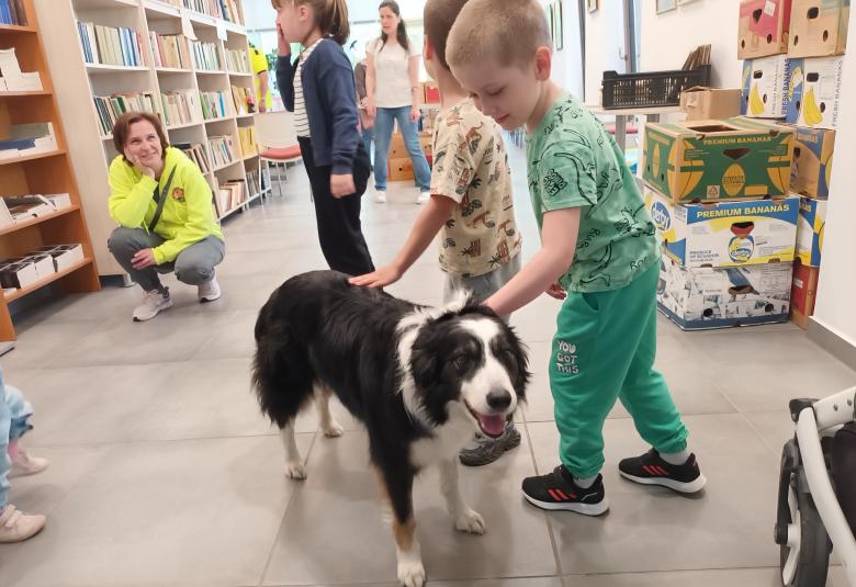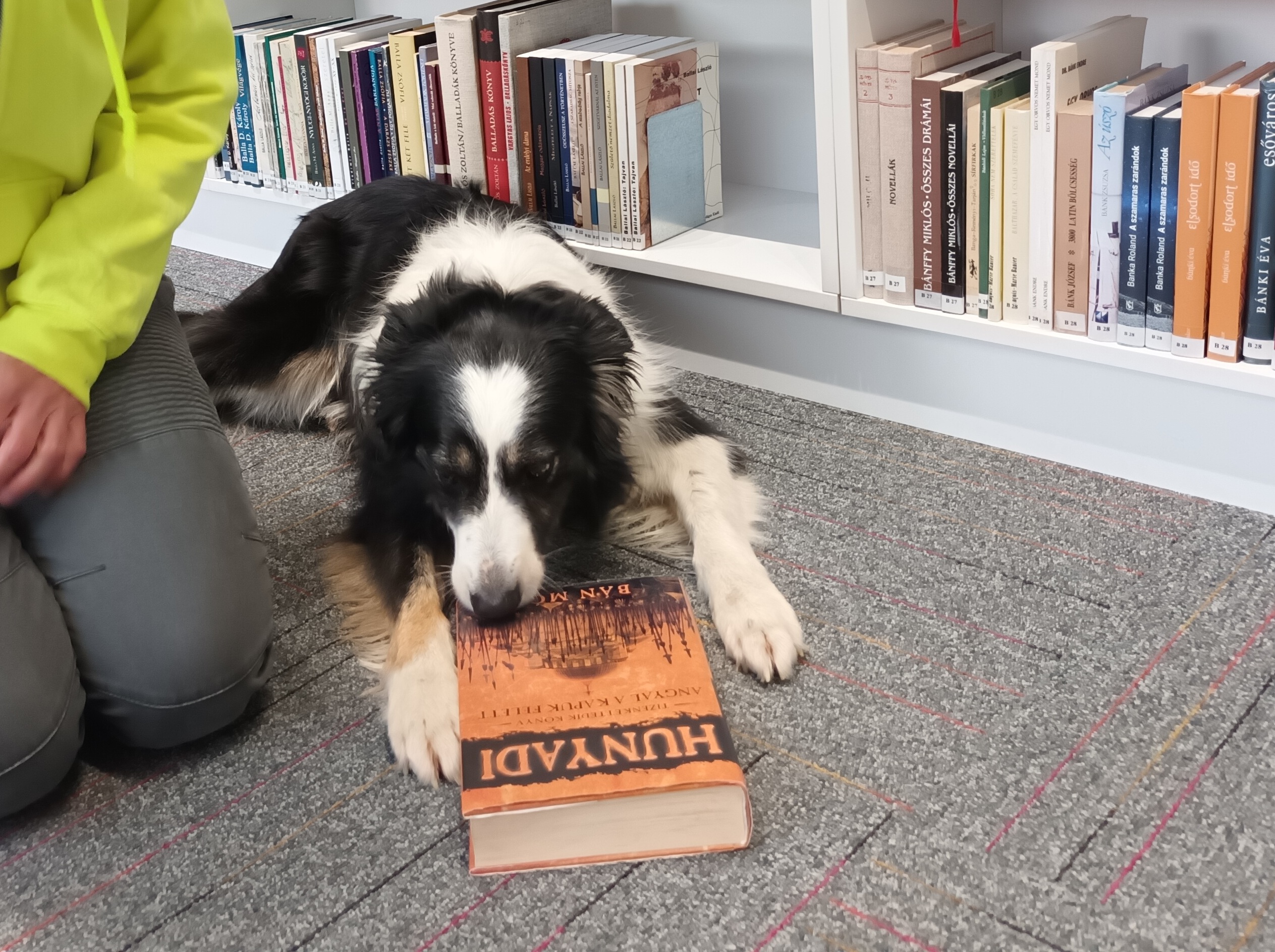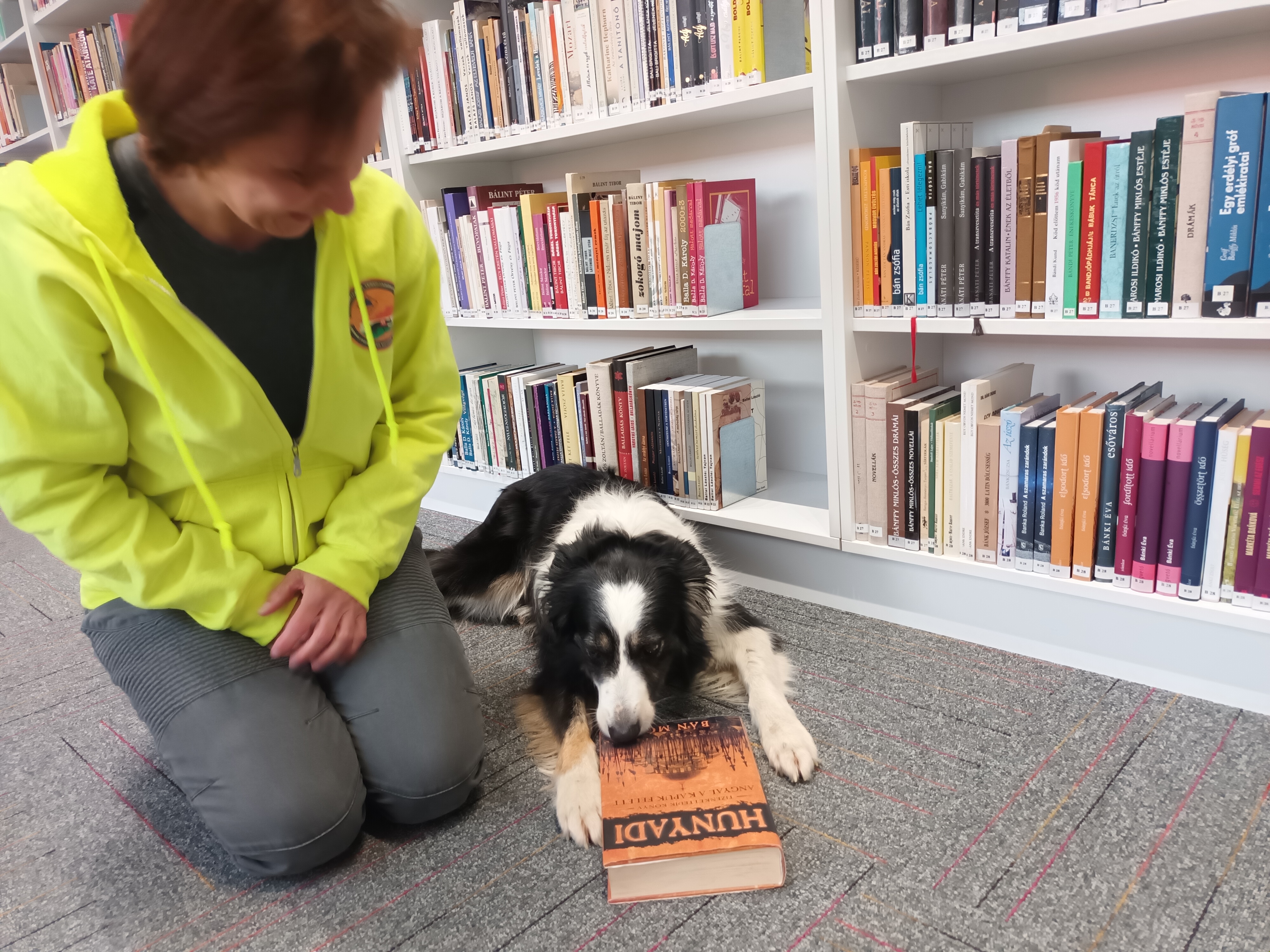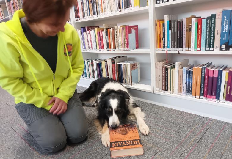 Penny is kedveli Hunyadit. Úgy tűnt, amikor a könyvtárunkban járt, hogy szívesen veszi, ha a kötet a közelében van. A mentőkutyát Gurdon Mária kutyakiképző oktató kísérte el, aki a Tatabányai 4x4 Terepjárós Önkéntes Tűzoltó Egyesület tagja - természetesen Pennyvel együtt.