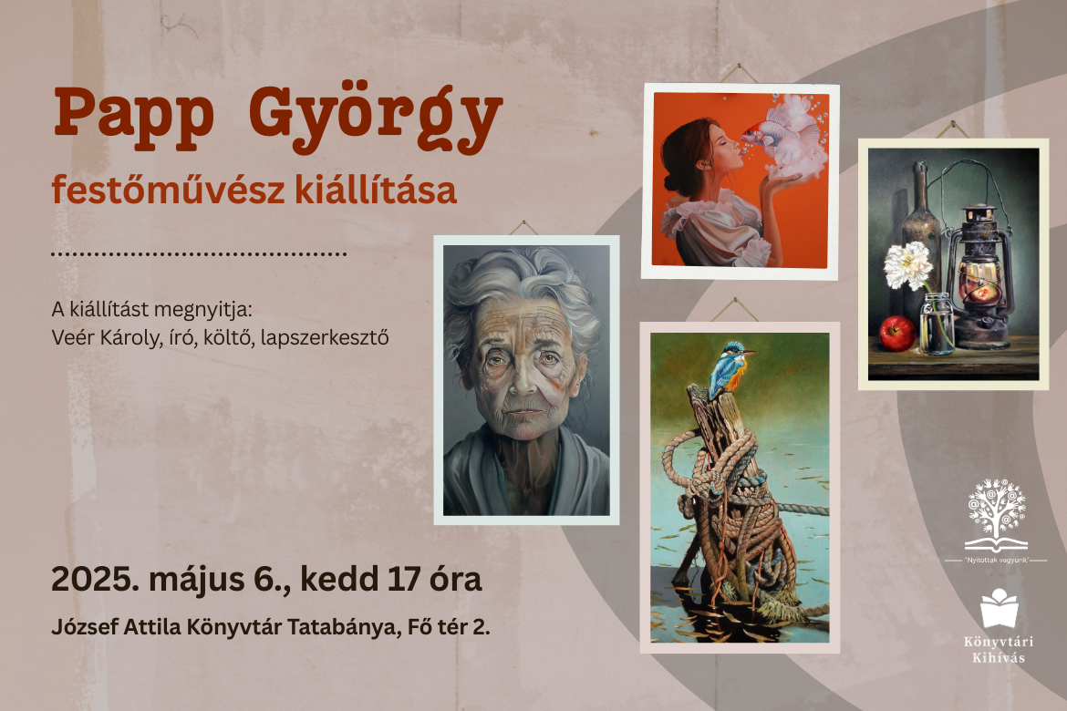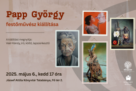 Hír Apr 17 / 0 Hozzászólások Papp György festőművész kiállítása Helyszín: Központi könyvtár (Fő tér 2.) Májusban Papp György festőművész kiállítását tekinthetik meg a könyvtárban. A kiállítás megnyitójára 2025. május 6-án, kedd 17 órától kerül sor a könyvtár kávézójában. Megnyitót mond: Veér Károly, író, költő, lapszerkesztő. Hasonló tartalmak December 11. – A Nemzetközi Hegynap Zöldkönyvtár Hír Dec 11 Karácsonyi dallamok a Kifordítva zenekarral Hír Dec 09 Rendkívüli nyitvatartás Hír Dec 08 Adventi kézműves és jótékonysági tombolavásár Hír Dec 06 Megrendítő hitelességgel tolmácsolta József Attila verseit Gáspár Sándor Hír Dec 04 Fogyatékos emberek nemzetközi világnapja Hír Dec 03