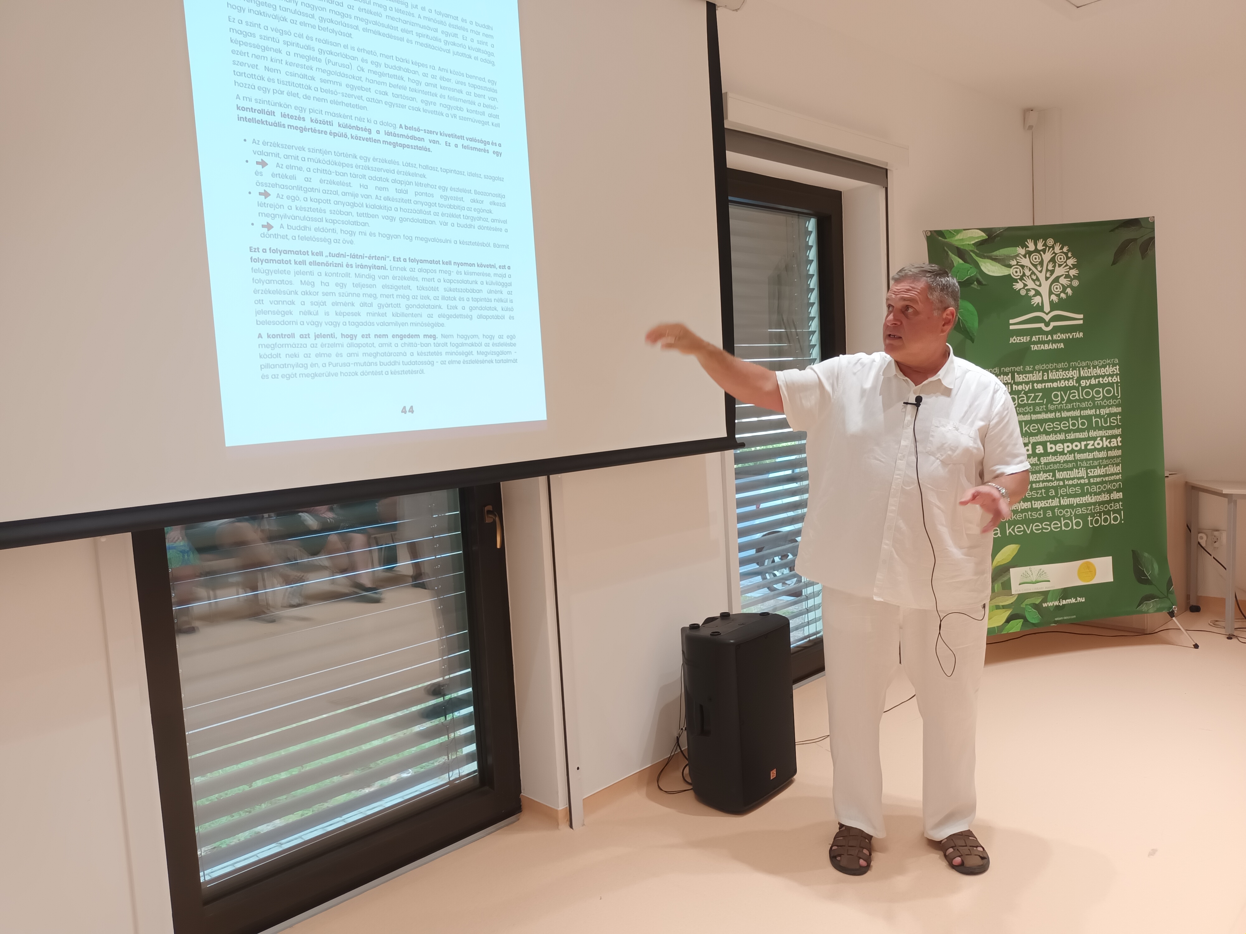 Nincs Én – Nincs lánc – Nincs korlát című könyvbemutatóra várta a József Attila Könyvtár az érdeklődőket a legutóbbi öko-esten. Soponyai János Ájurvéda terapeuta, fizika-kémia szakos tanár, doktorandusz mutatta be most megjelent kötetét. A szerző többször járt Indiában, s ma már szellemi tanítóként próbál segíteni azoknak, akik mélyebb önismeretre vágynak, és szeretnék levetkőzni a személyiség által szabott korlátokat.