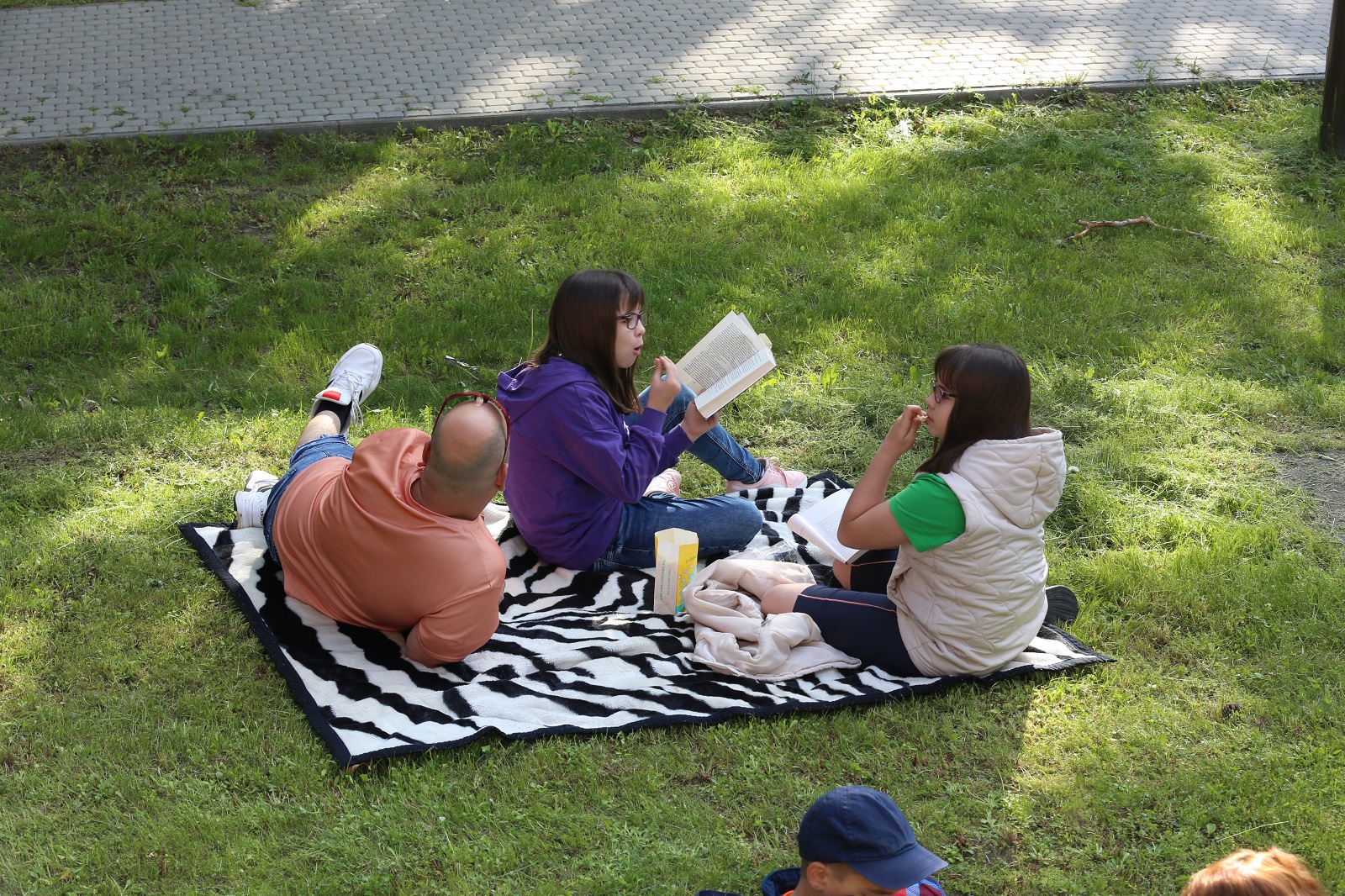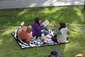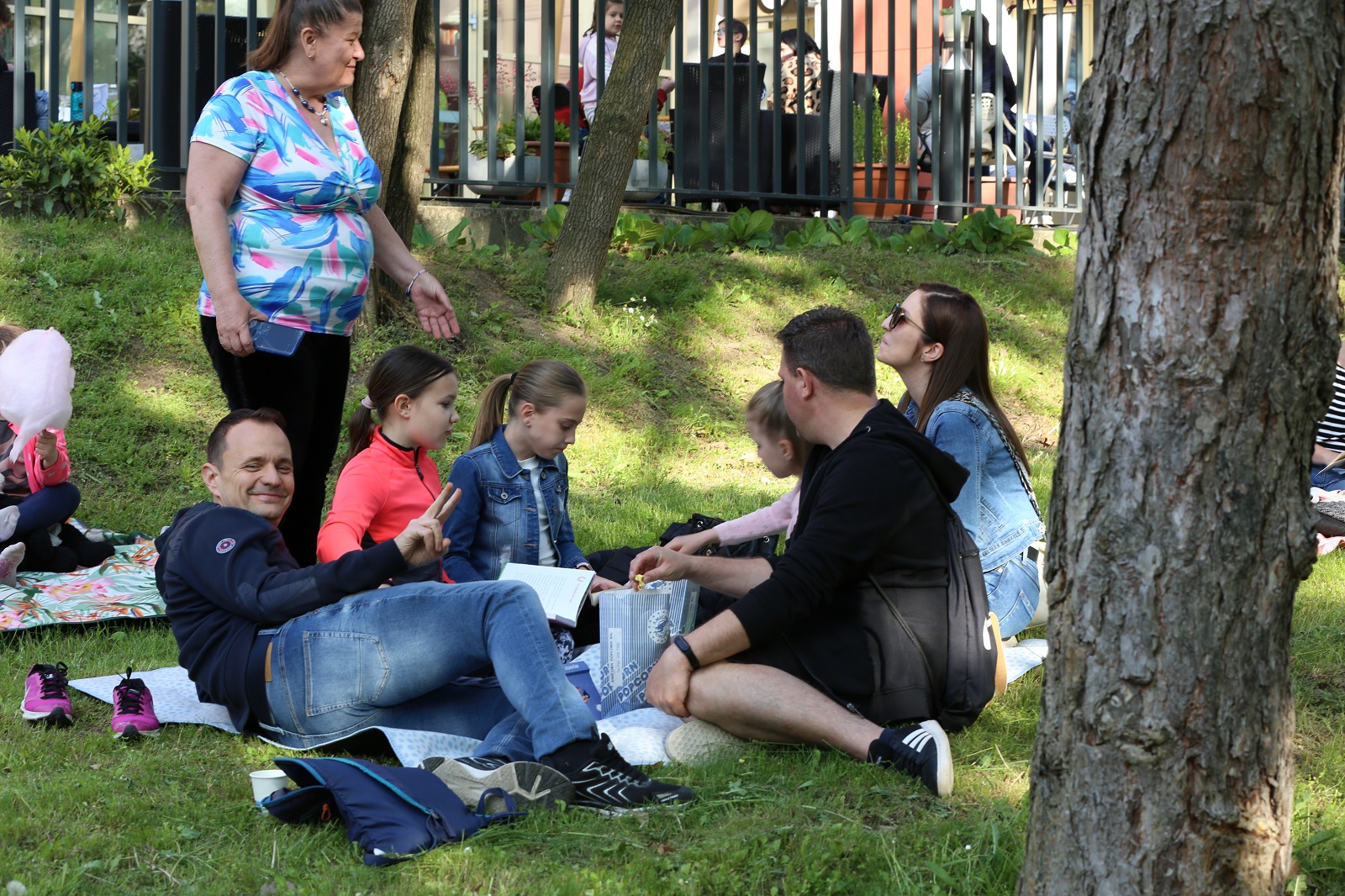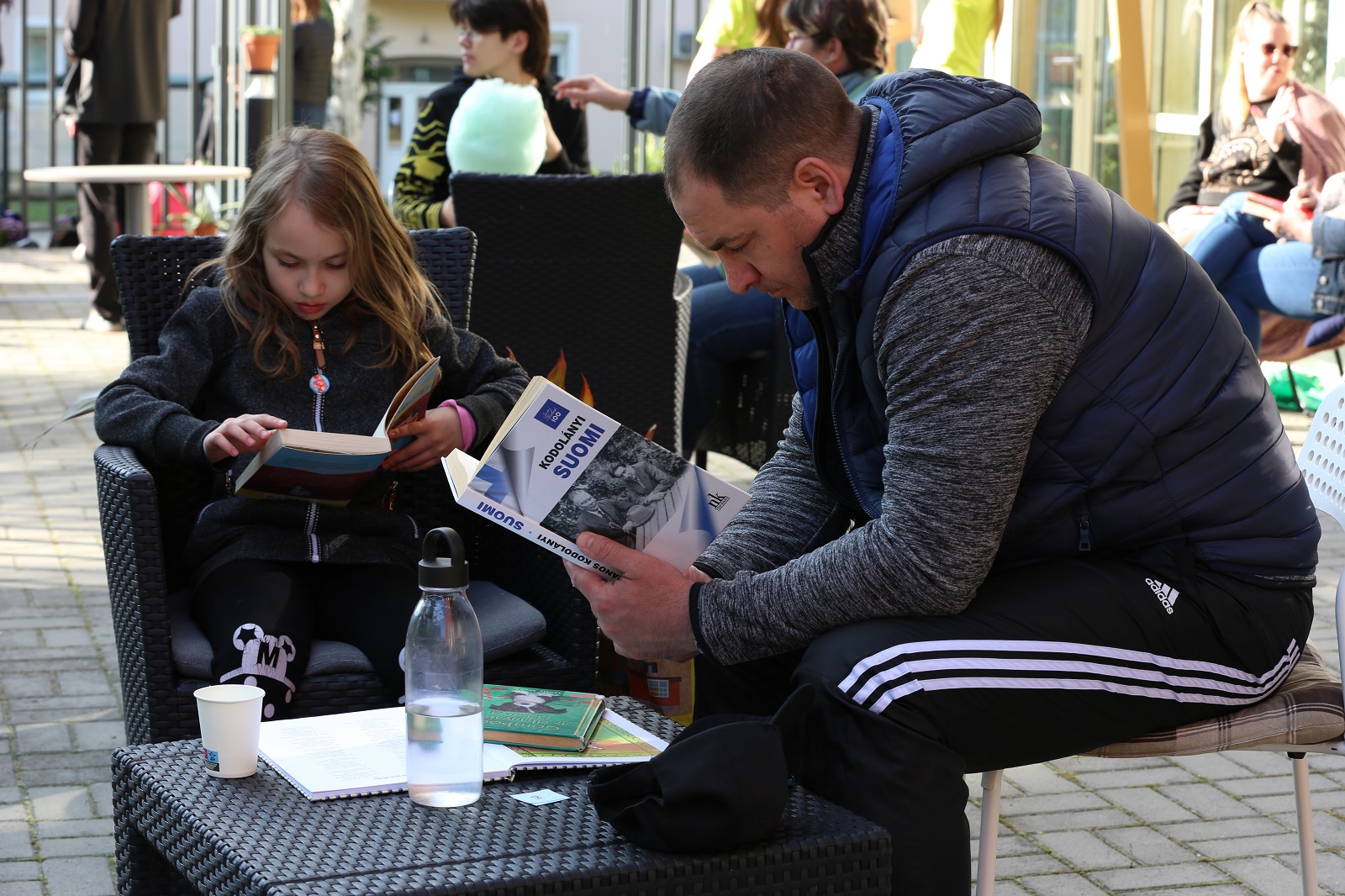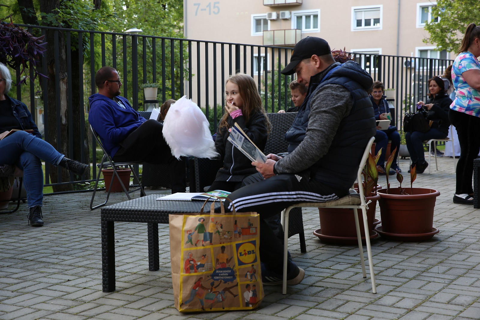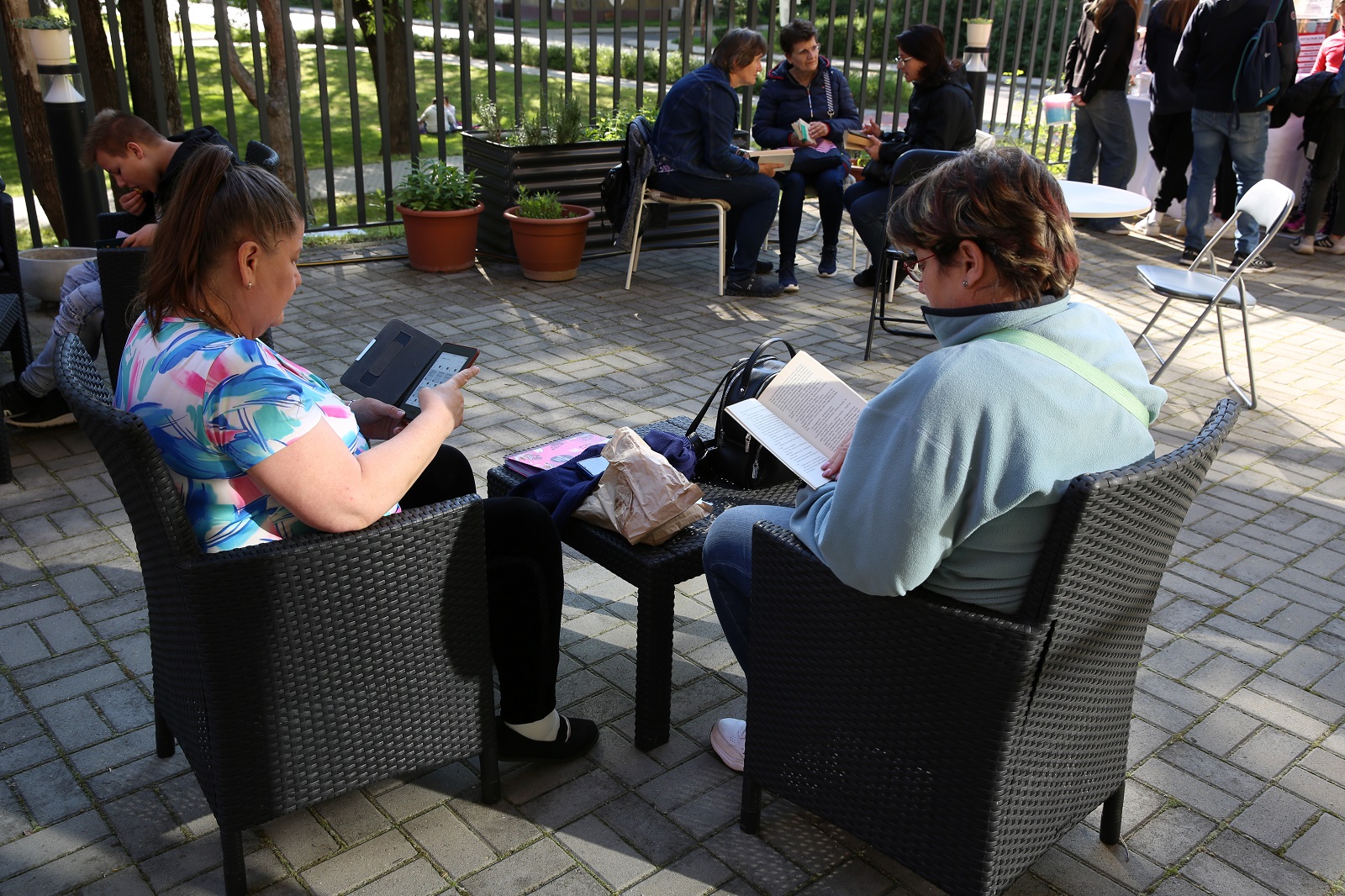 Voltak, akik nem is egy kedvenc könyvvel érkeztek, hanem egy táskányit hoztak magukkal. A parkban színes plédeken lapozgatták könyveiket, beszélgettek az érkezők. Az Öko-teraszon közben nagy volt a nyüzsgés: főként a legkisebbek figyelmét keltette fel a színes vattacukor-csoda és a pattogatott kukorica. S ha valaki az édes-sós nyalánkságok után megszomjazott, háziszörpöt is fogyaszthatott a könyvtárosok jóvoltából.
