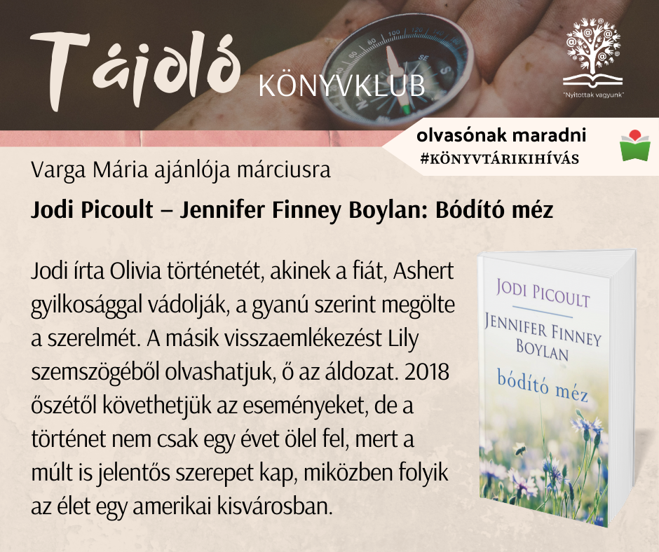 Szívesen olvasna, de nem tudja mit? Megfogadta, hogy idén aktív könyvtárhasználó lesz, és javaslatra van szüksége ahhoz, hogy melyik könyvet vegye le a polcról? A Tájoló könyvklub tagjai segítségére lehetnek ebben. Minden hónapban ajánlanak Önnek egy nekik fontos, hozzájuk közel álló könyvet, mely a sok olvasmány közül valamilyen oknál fogva kiemelkedik: amely jó barát és segítő támasz lehet mások számára is, vagy felhőtlen szórakozást kínálhat a borús napokon.