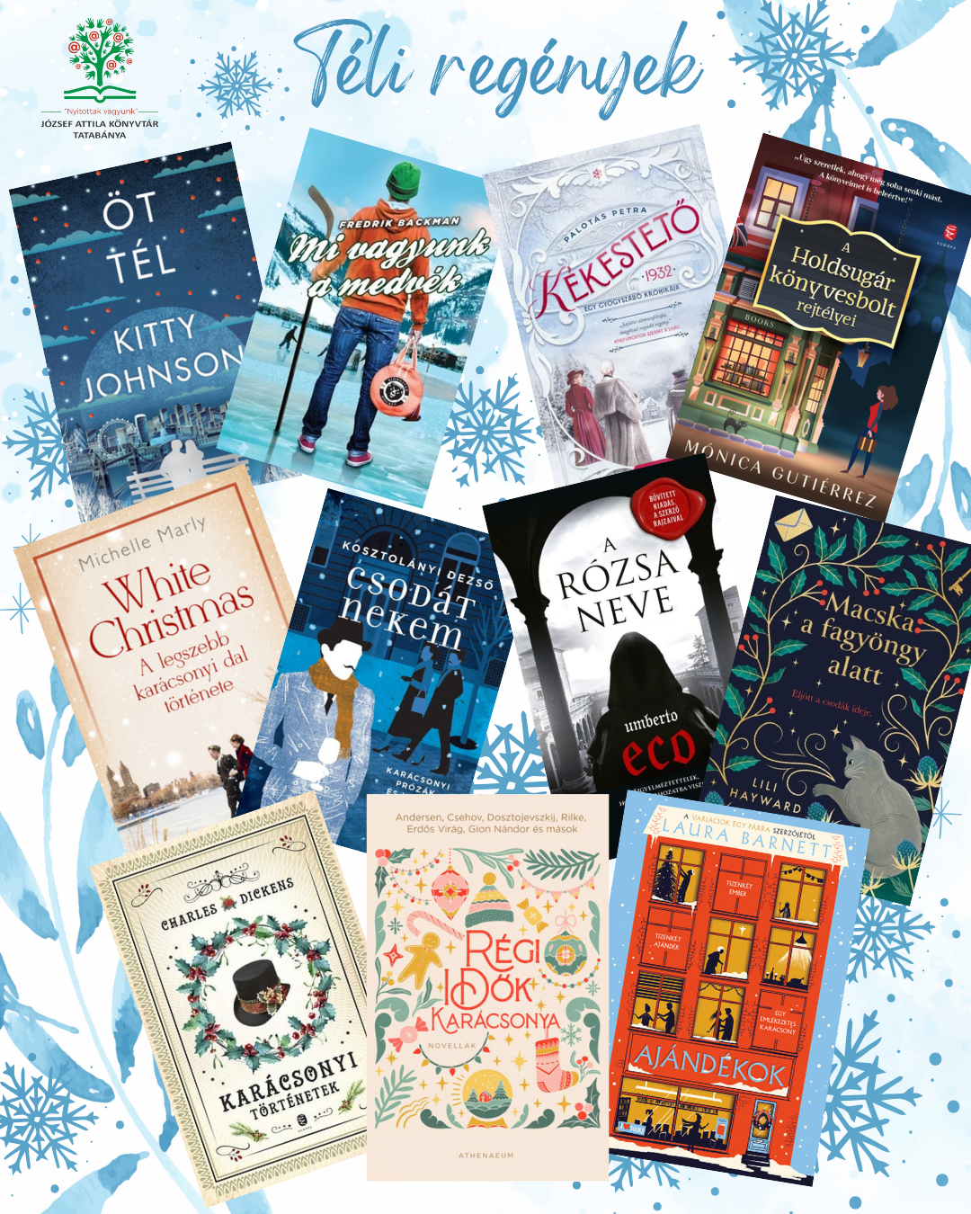 Ugyan kint még nem esik a hó, de lassan közeledik a karácsony, így az ünnepi hangulat megalapozásához az alábbi könyveket ajánljuk. Szeretnénk felhívni olvasóink figyelmét, hogy a Központi könyvtár 2025. december 23-án lesz nyitva idén utoljára, továbbá 2026. január 1-től beiratkozási díjaink változnak. Felnőtteknek 3.000 Ft/évről 4.000 Ft/évre, 70 év alatti nyugdíjasoknak 1.000 Ft/évről 2.000 Ft/évre nő, így érdemes még az idei évben megújítani a könyvtári tagságot. 70 éven felüliek és 25 éven aluliak számára továbbra is ingyenes a beiratkozás. Könyvtáraink ünnepi nyitvatartásáról az alábbi oldalon tájékozódhatnak: https://www.jamk.hu/hu/hir/unnepi-nyitvatartas-1