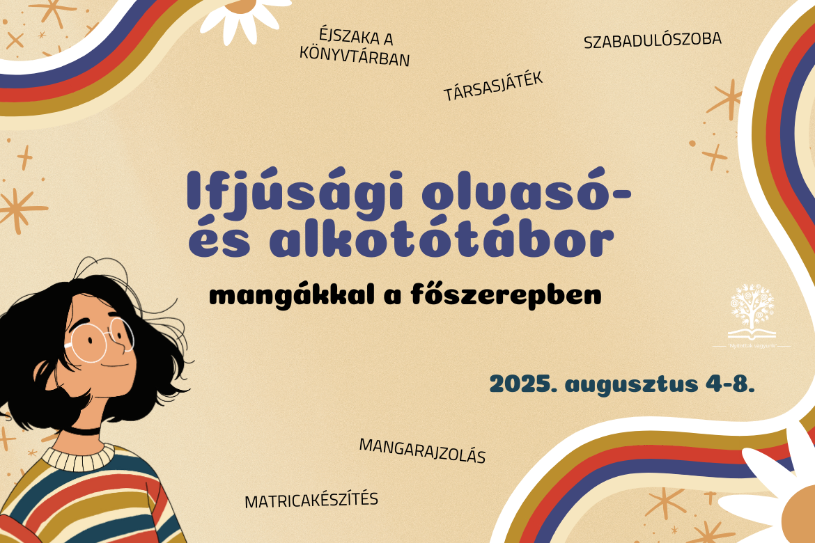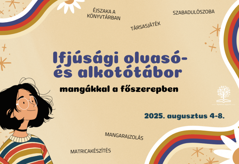2025. augusztus 4-8. között megrendezésre kerülő napközis táborunkba várjuk az olvasni és alkotni szerető 12-16 éves fiatalokat!
