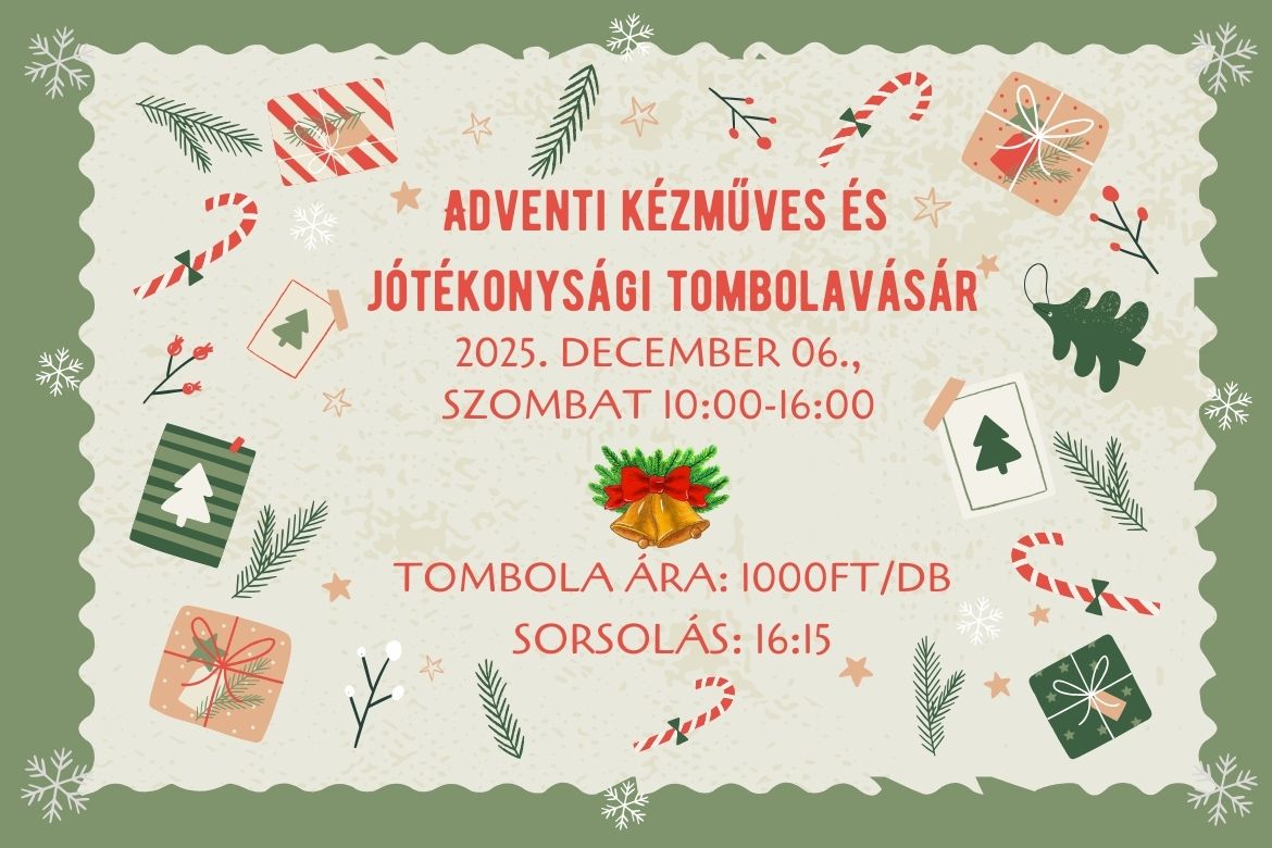 Szeretettel várunk minden érdeklődőt december 6-án 10:00 és 16:00 között az Adventi kézműves és jótékonysági tombolavásárra, ahol ünnepi hangulat, különleges portékák és jókedv várja a látogatókat!