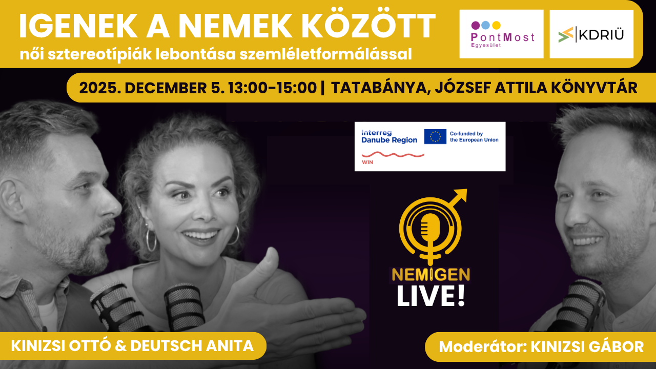 Az esemény egy kétórás, közösségi beszélgetésest Tatabányán, amely a NEMIGEN podcast szellemiségét „élőben” hozza el a résztvevőkhöz. A cél, hogy biztonságos, ítélkezésmentes térben közösen gondoljuk végig a hétköznapjainkban működő női sztereotípiákat, és konkrét, hazavihető megoldásokat találjunk a szerepek kiegyensúlyozottabb elosztására.