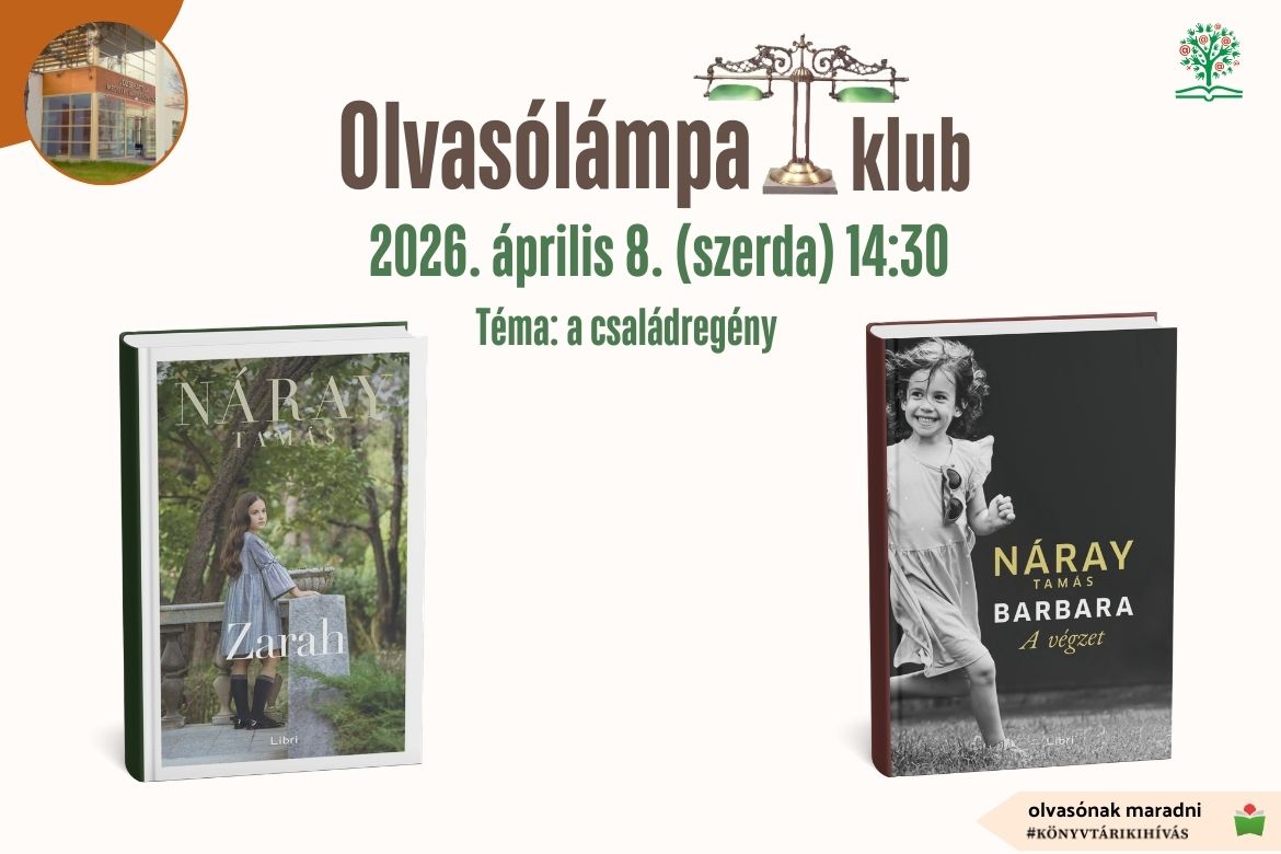 Az Olvasólámpa klub következő klubnapja 2026. április 8-án, 14:30-kor lesz.