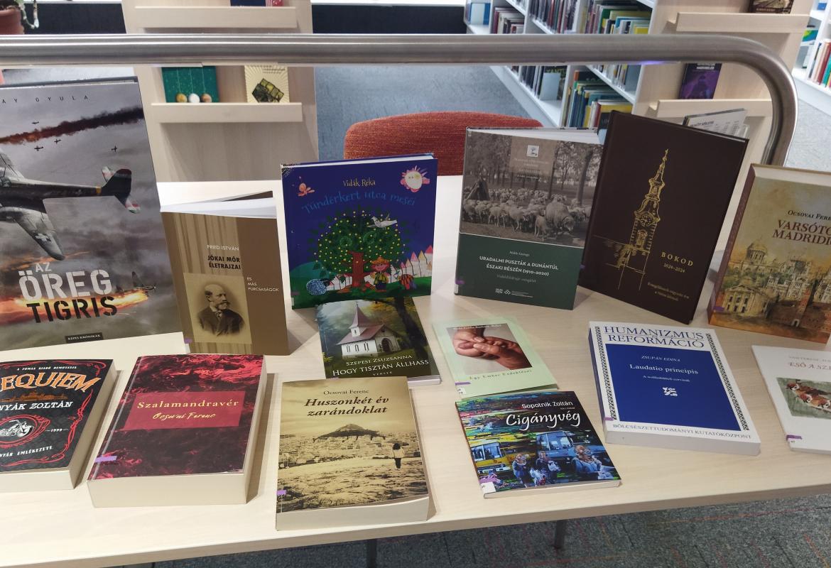 Keresse lila csíkkal jelölt helyismereti dokumentumainkat a könyvtár első emeletén lévő helyismereti gyűjteménynél, a legújabb irodalmat pedig a polcok végeinél!