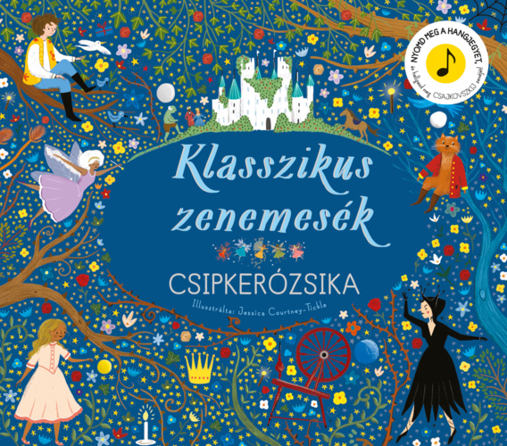 Nyomd meg a hangjegyet minden oldalon, hogy Csajkovszkij Csipkerózsika című darabjának bizonyos részletei életre keljen, majd hallgasd meg újra a dallamokat a könyv végén!