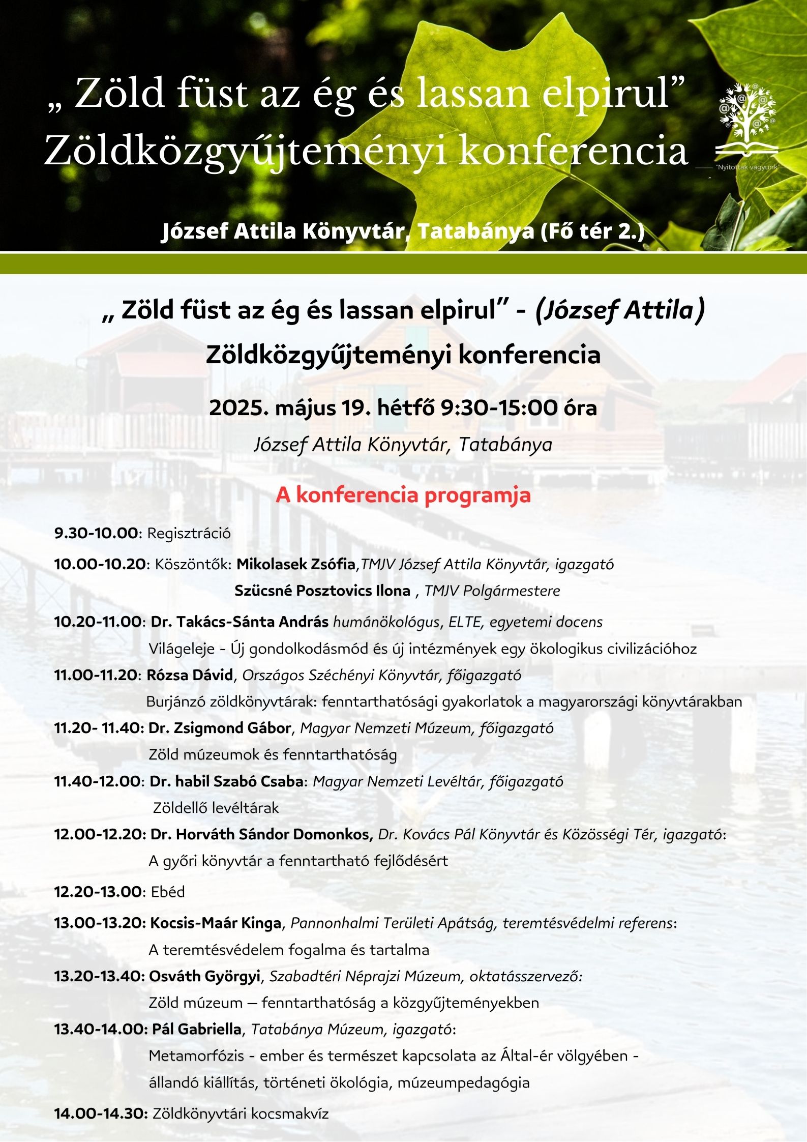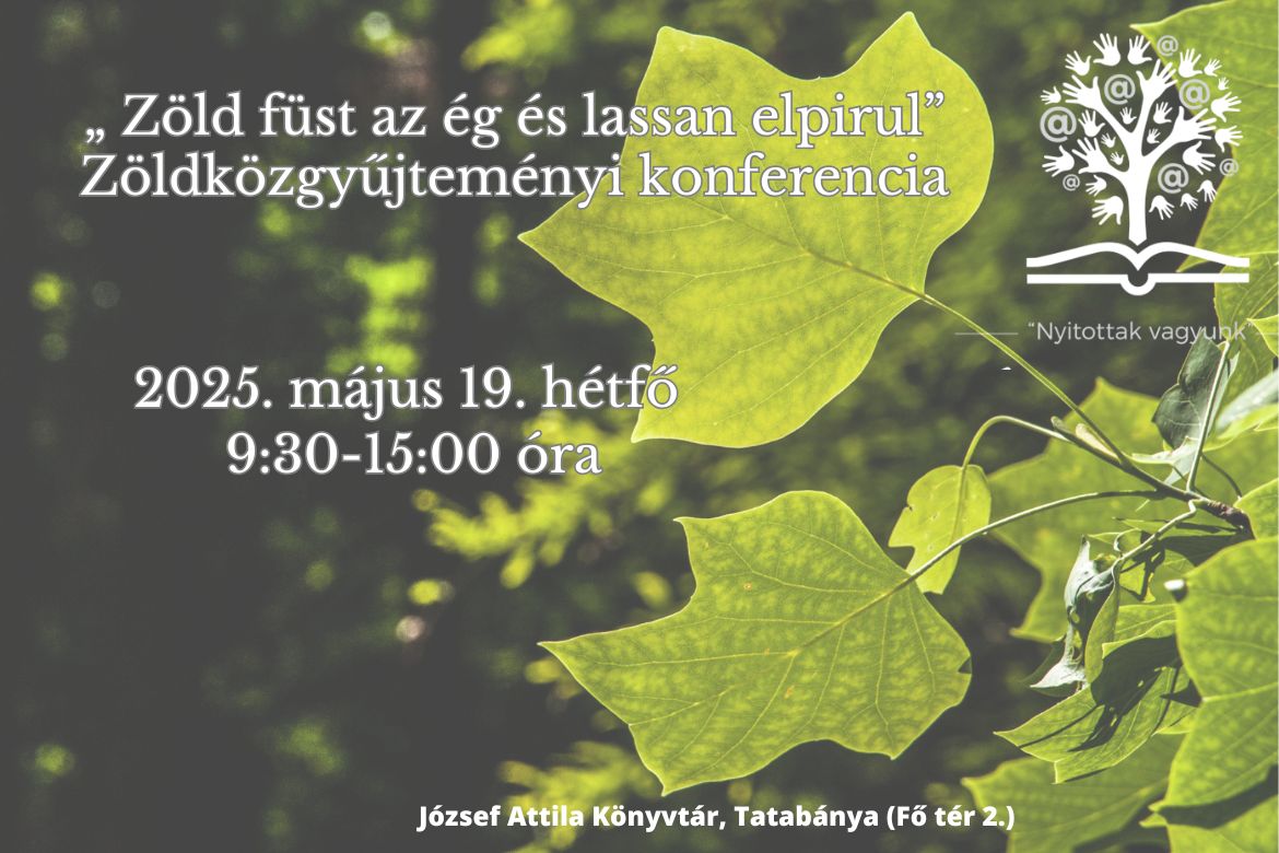 A tatabányai József Attila Könyvtár szeretettel meghívja az érdeklődőket a „Zöld füst az ég és lassan elpirul” - Zöldközgyűjteményi konferencia című szakmai konferenciára.